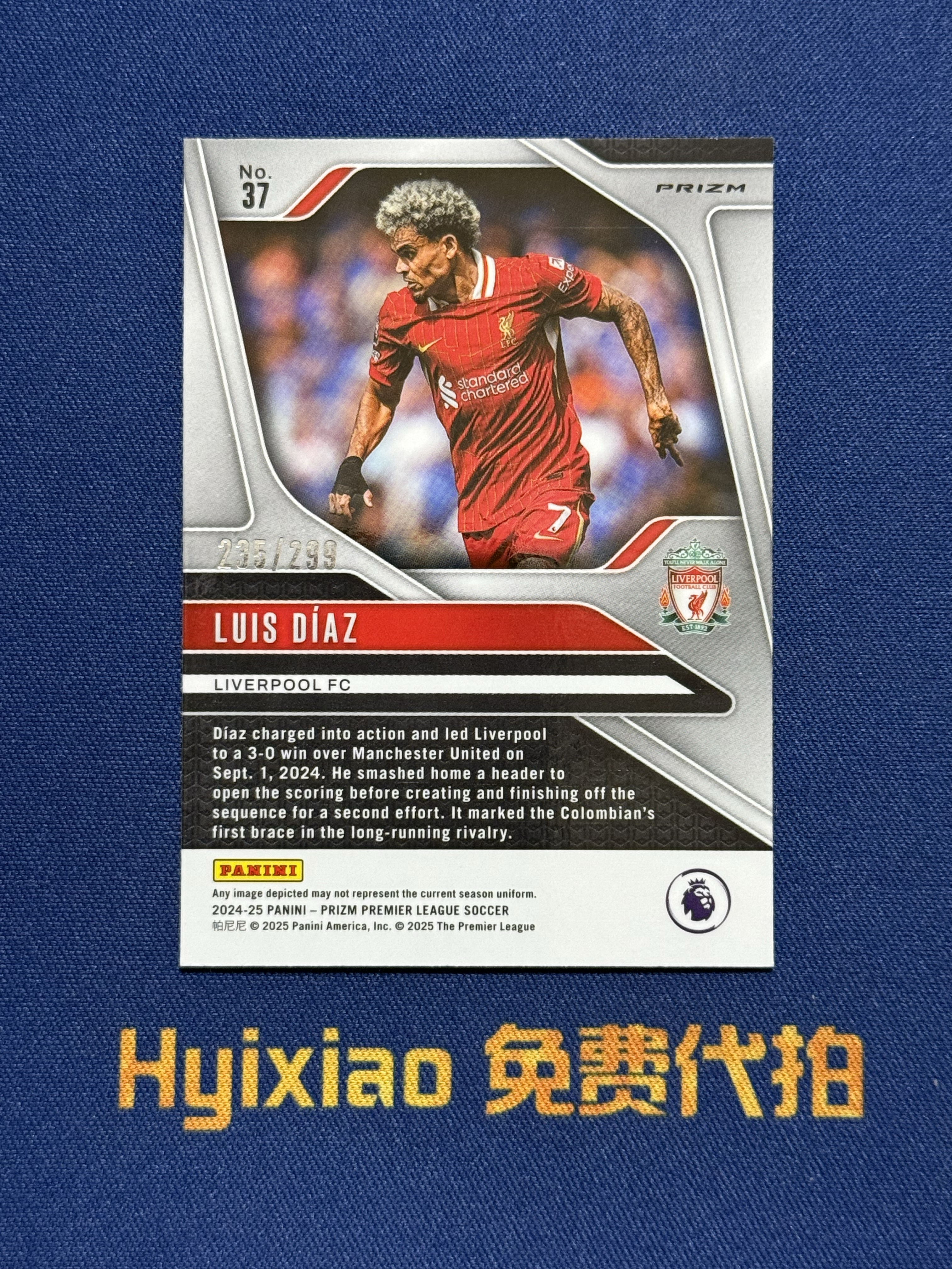 2024-25 Panini Prizm Luis Diaz (免费代拍)英超 PZ 路易斯 迪亚斯 利物浦 拜仁 哥伦比亚 /299编 蓝折 卡品如图 收藏必备 jx11