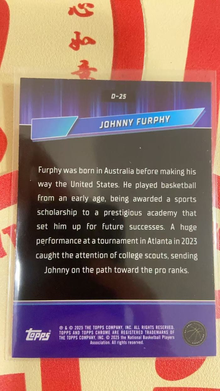 2024-25 Topps Chrome 约翰尼 弗菲 Johnny Furphy 收藏必备 凑套必备