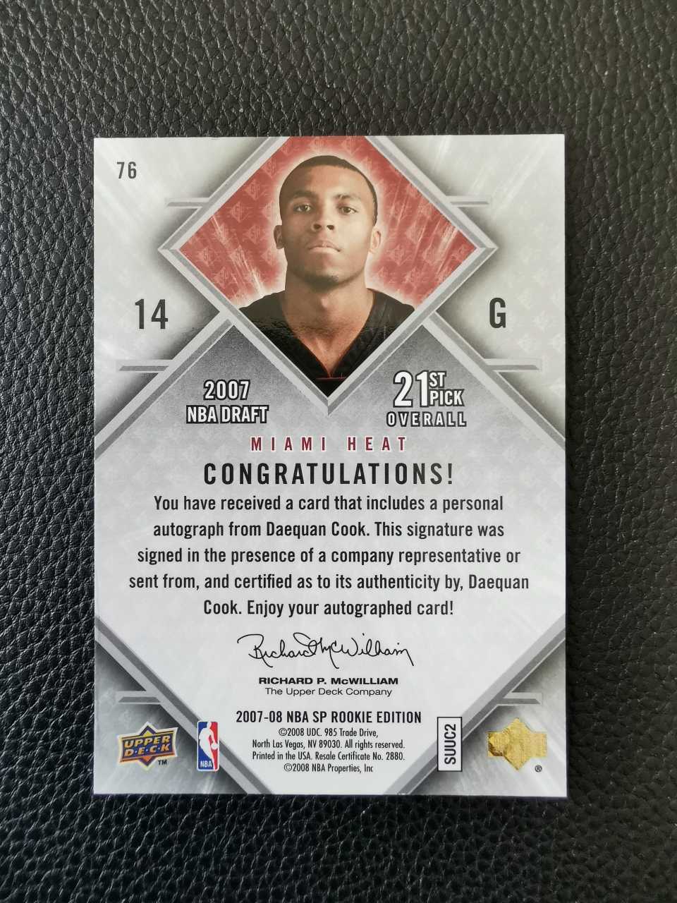 【金矿拍卖】2007-08 upper deck ud sp rookie 热火新秀rc 戴奎恩库克 daequan cook 签字 全明星三分大赛冠军 背边印 小天