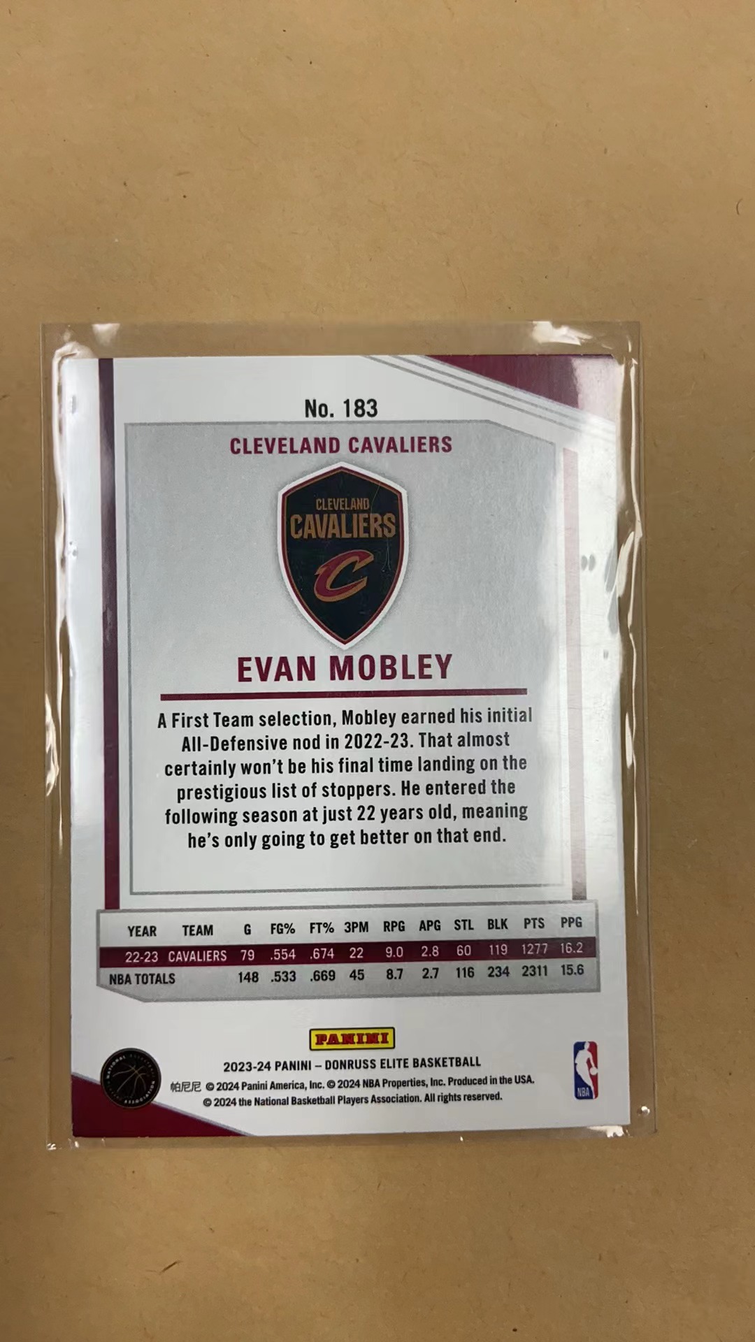 2023-24 Panini Elite Evan Mobley 骑士队 埃文 莫布利 篮球 精英Elite 实卡精美 收藏必备 凑套必备