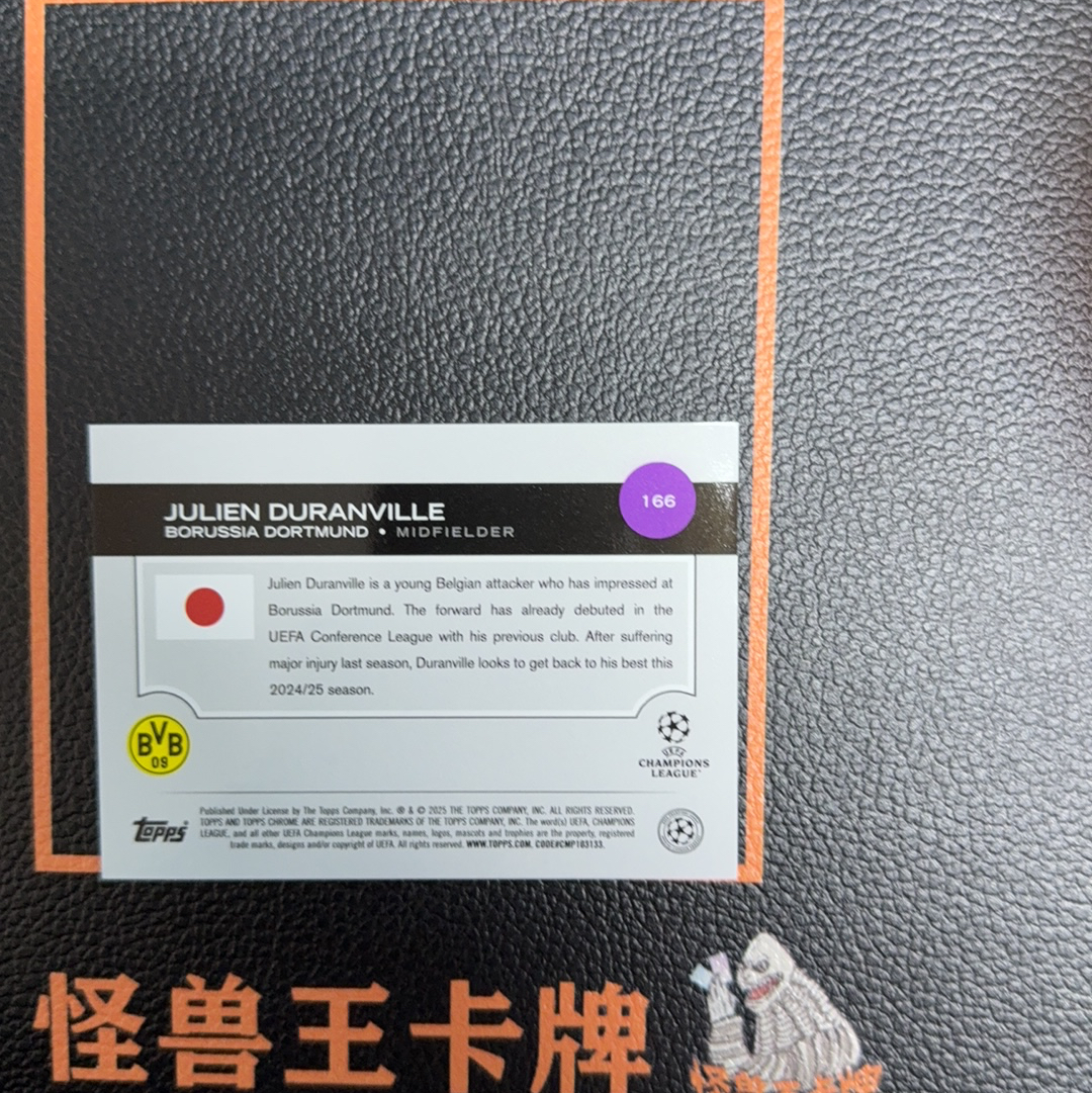 (怪兽拍卖) GSW-B50 2024-25 Topps Chrome Julien Duranville 朱利安 杜兰维尔 杜伦维尔 比利时 多特 125编 紫mojo折 樱花