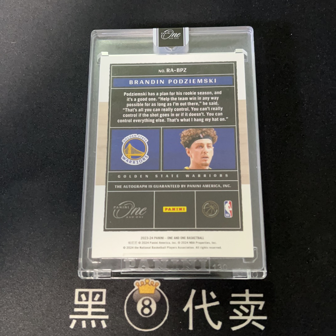 48【黑8代卖】2023-24 Panini One and One系列 Brandin Podziemski 波杰姆斯基 RC 新秀 签字 卡签 37/99编 原封砖【Keinor】