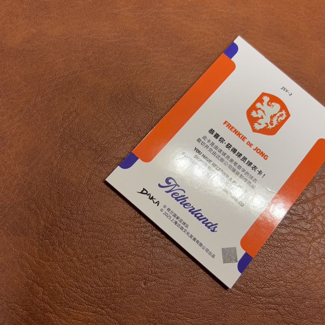 2025 DAKA 荷兰国家队队盒 Frenkie de Jong 【耳朵拍卖】 达咖 荷兰 弗兰基 德容 物料球衣卡 箱A 收藏必入 瑕疵见图 大帝