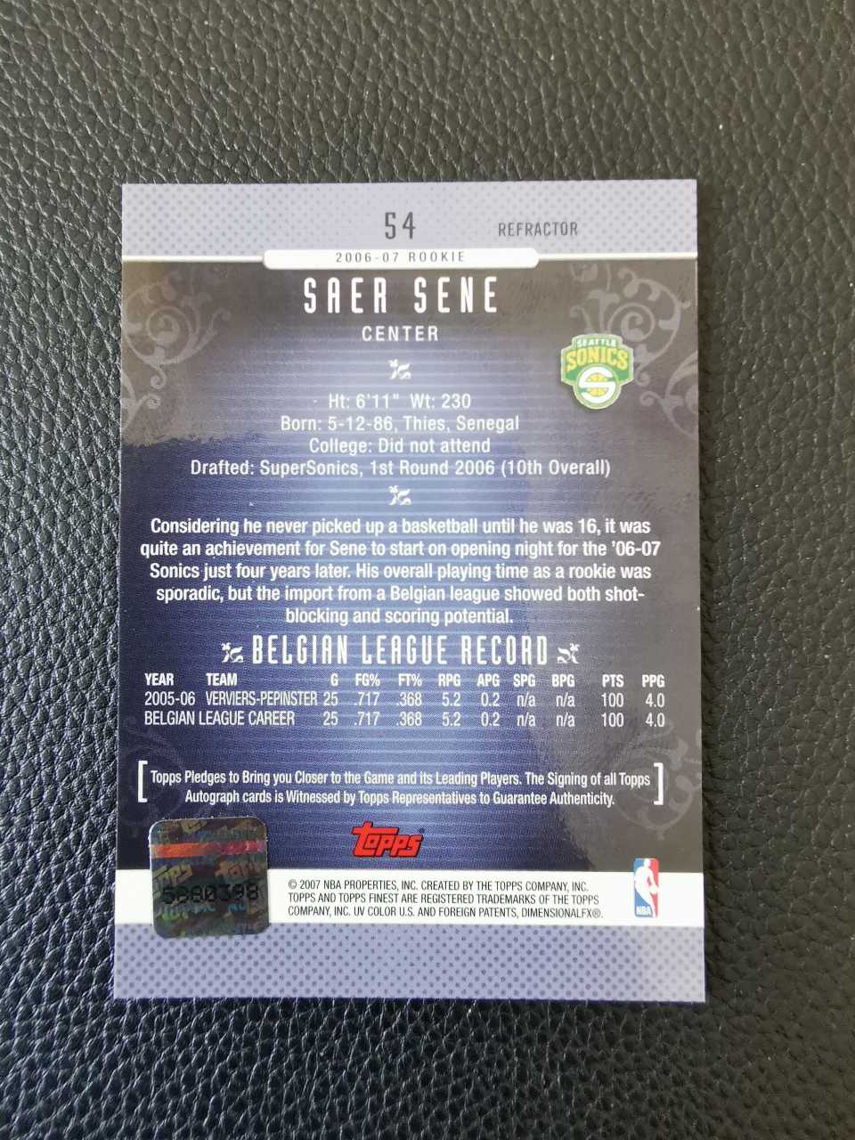 【金矿拍卖】2007 topps finest rookie card 超音速新秀rc 塞尔希尼 saer sene 银折折射 签字 潜力新星 小天