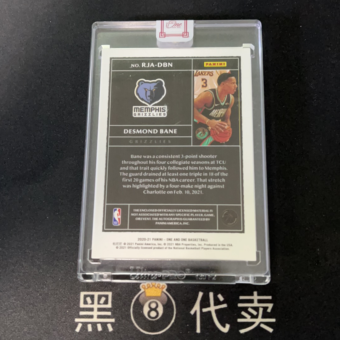 50【黑8代卖】2021-22 Panini One and One系列 Desmond Bane 德斯蒙德 贝恩 霸王龙 RC 新秀 签字 卡签 球衣切割 23/99编 RJA原封砖【Keinor】