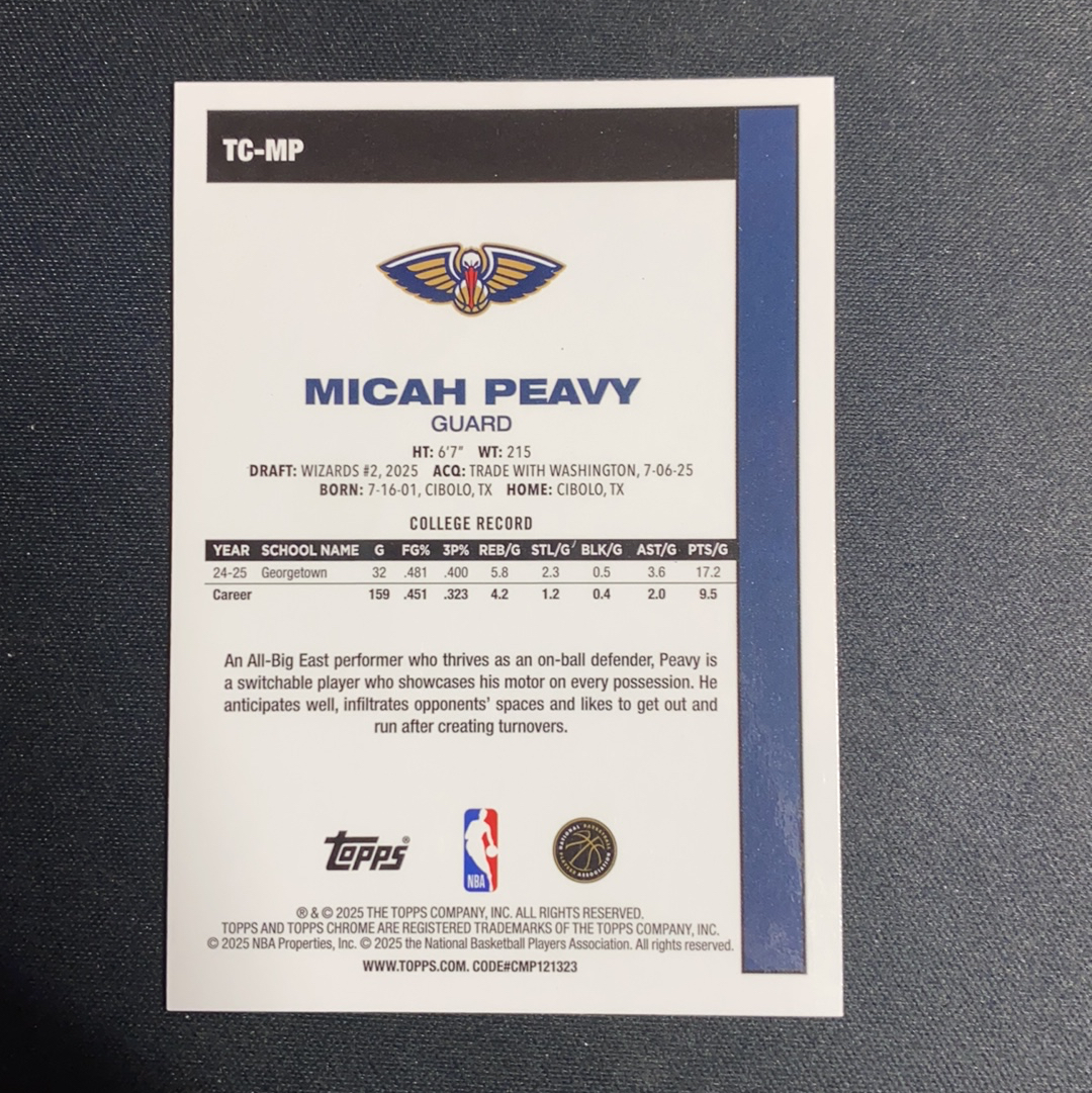 2025-26 Topps Flagship Micah Peavy RC 鹈鹕 新秀 迈卡 皮维 199编 卡品如图 空白