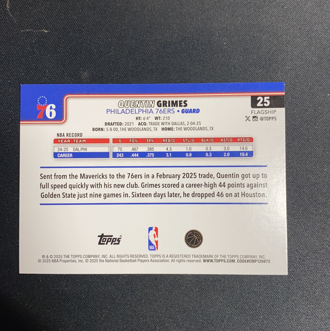 2025-26 Topps Flagship Quentin Grimes 76人 格兰姆斯 150编 卡品如图 空白