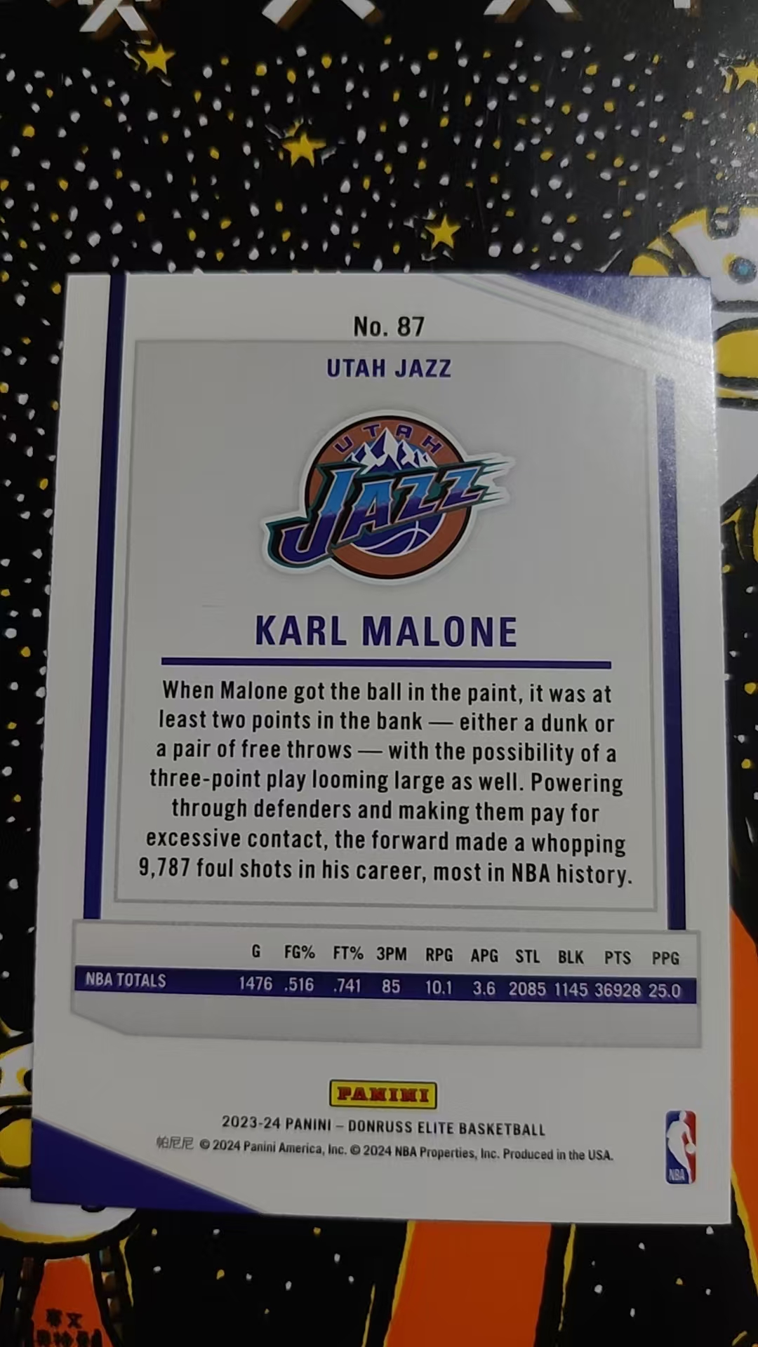 2023-24 Panini Elite karl malone 爵士 卡尔 马龙 邮差 红折 折射 硬通货 卡品精美 凑套必备 收藏必备