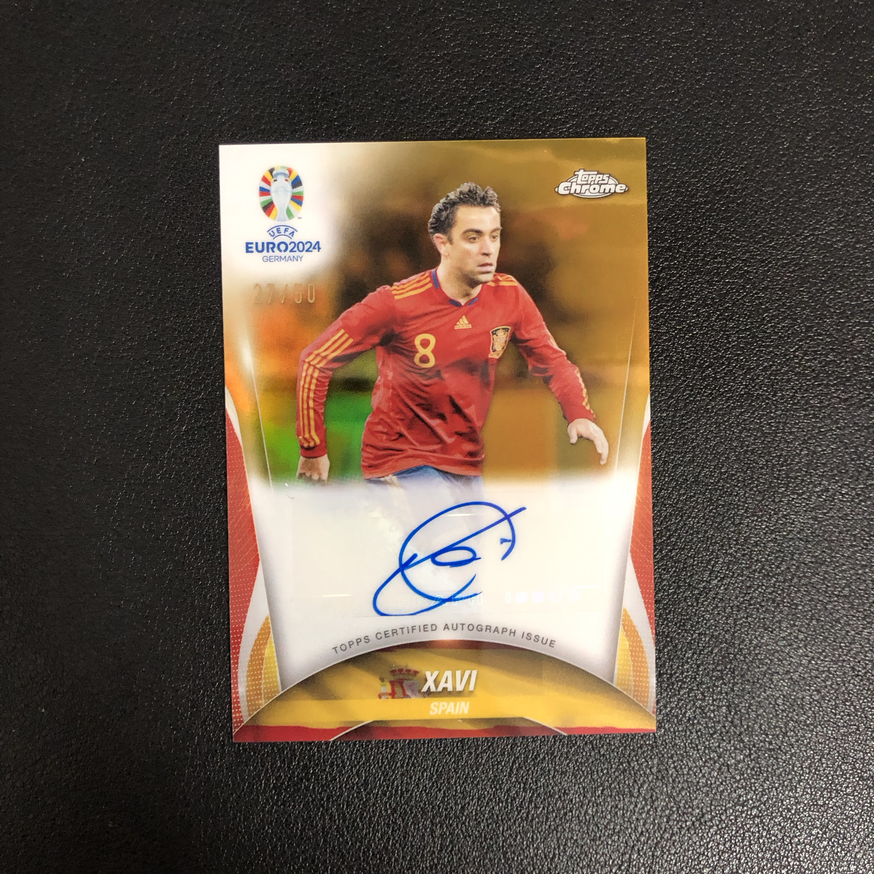 2024 Topps Chrome XAVI 欧洲杯TC 哈维 西班牙 巴塞罗那 巴萨 27/50编 金折 折射 签字 签名 卡品如图 默认微瑕 收藏必备(保险)