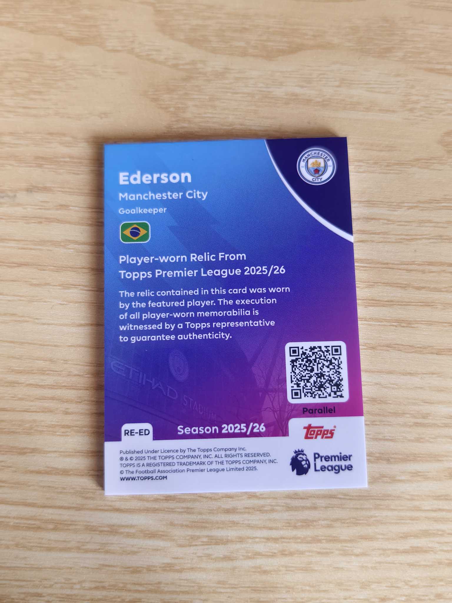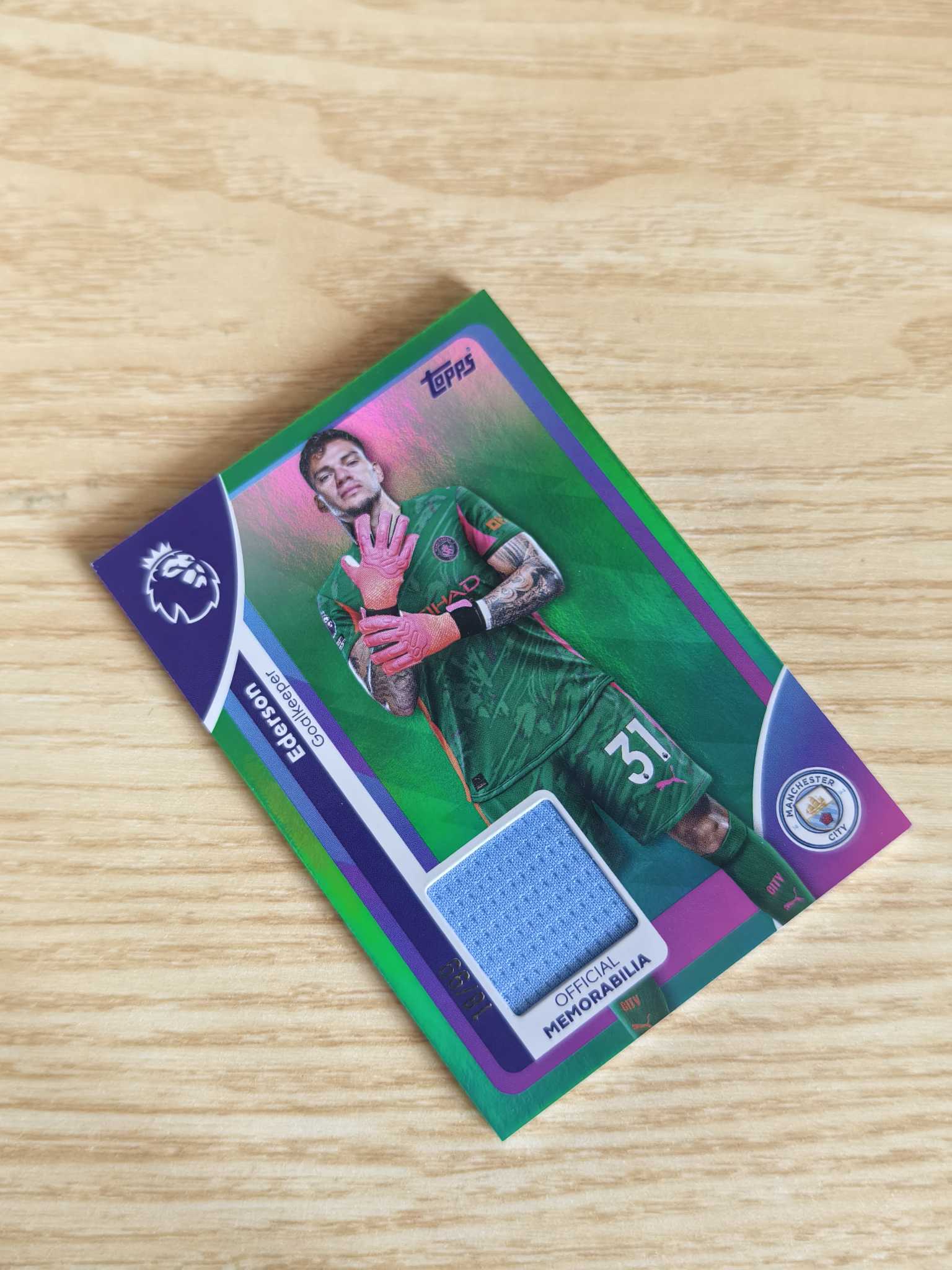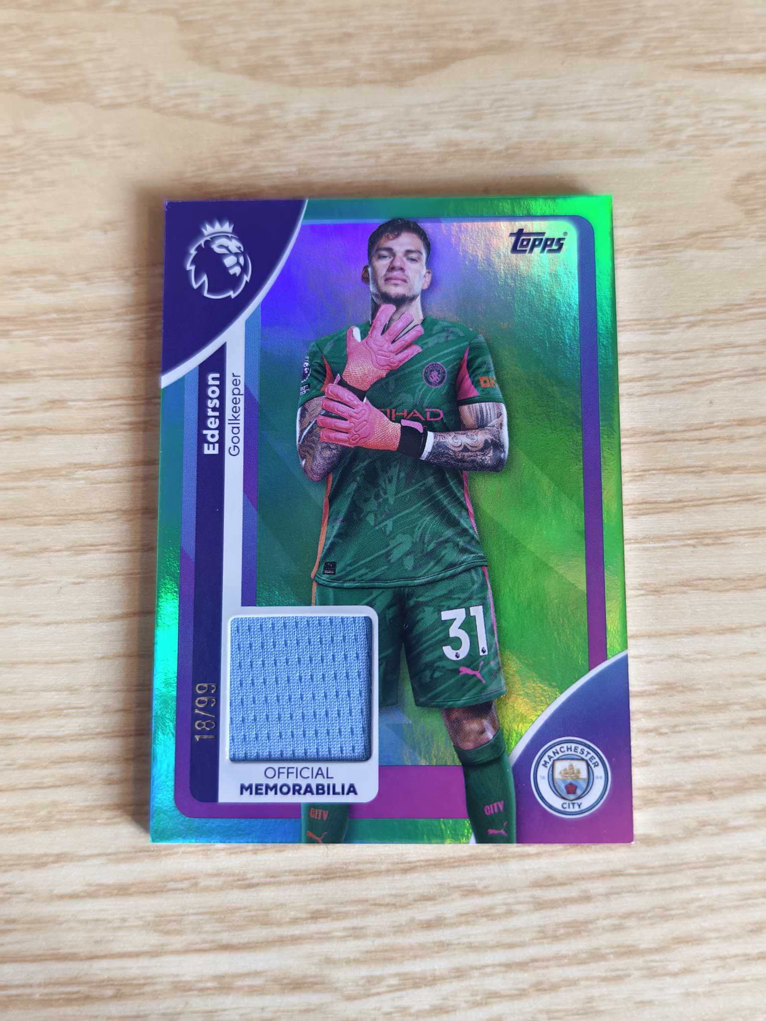 2025 Topps Premier Ederson 英超 曼城 巴西 埃德松 埃德森 单窗物料 球衣切割 99编 绿折 收藏必备 专收必备