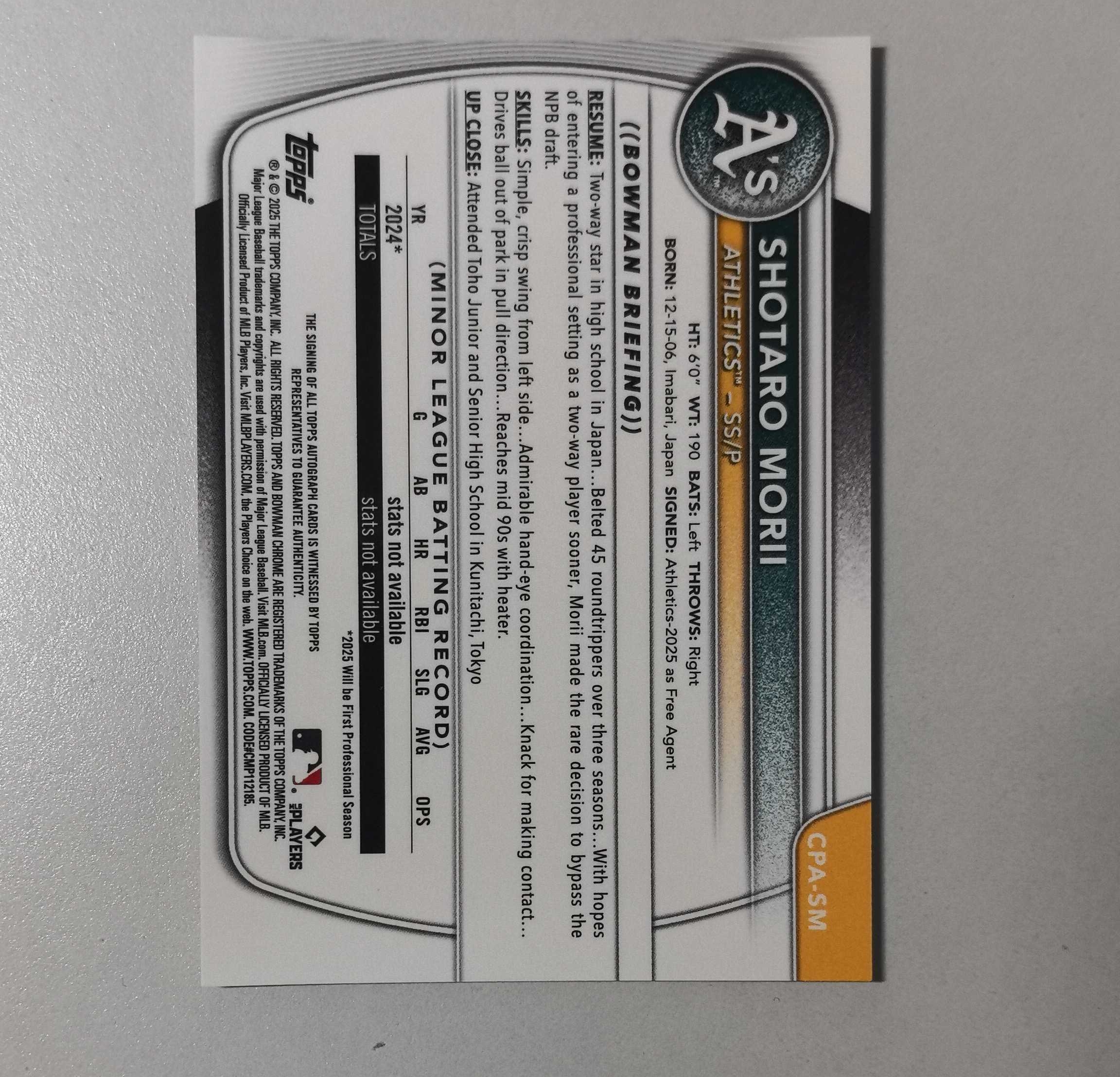 2025 Topps 【锡安代卖】 累计照常 棒球mlb bowman 1st新秀签字卡签 奥克兰运动家热门新秀大物 森井翔太郎 shotaro Morii 卡品如图 卖卡锡