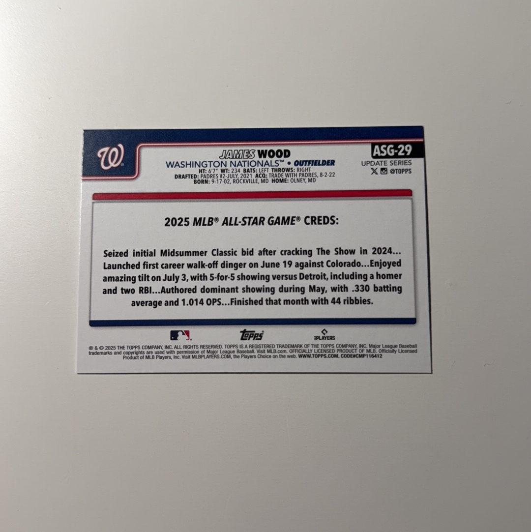 2025 Topps 【锡安代卖】 累计照常 棒球mlb update james wood 詹姆斯 伍德 新秀RC 银折 收藏必备 卡品如图 春总