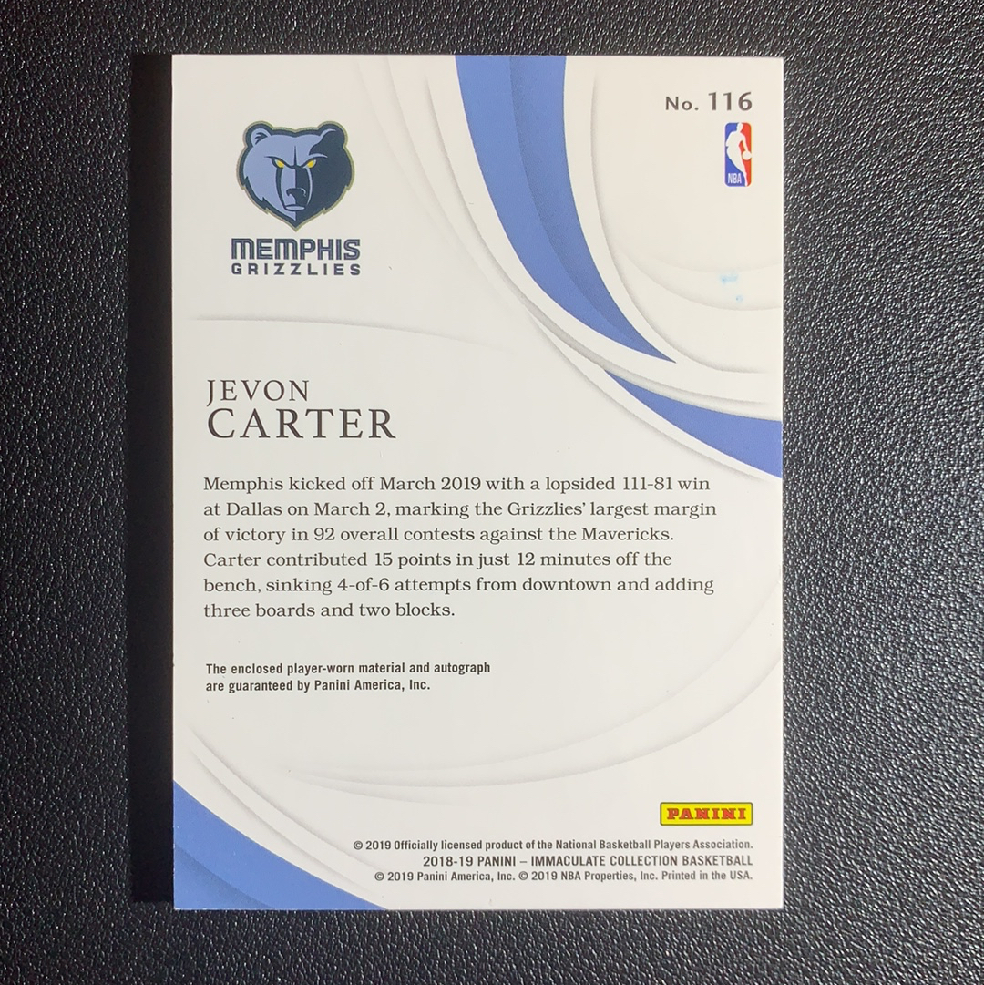 2018-19 Panini Immaculate Jevon Carter RC 灰熊 杰文卡特 新秀 签字 卡签 镜面 球衣 物料 rpa 25编 低编 红平行 篮球 轻印-S00260