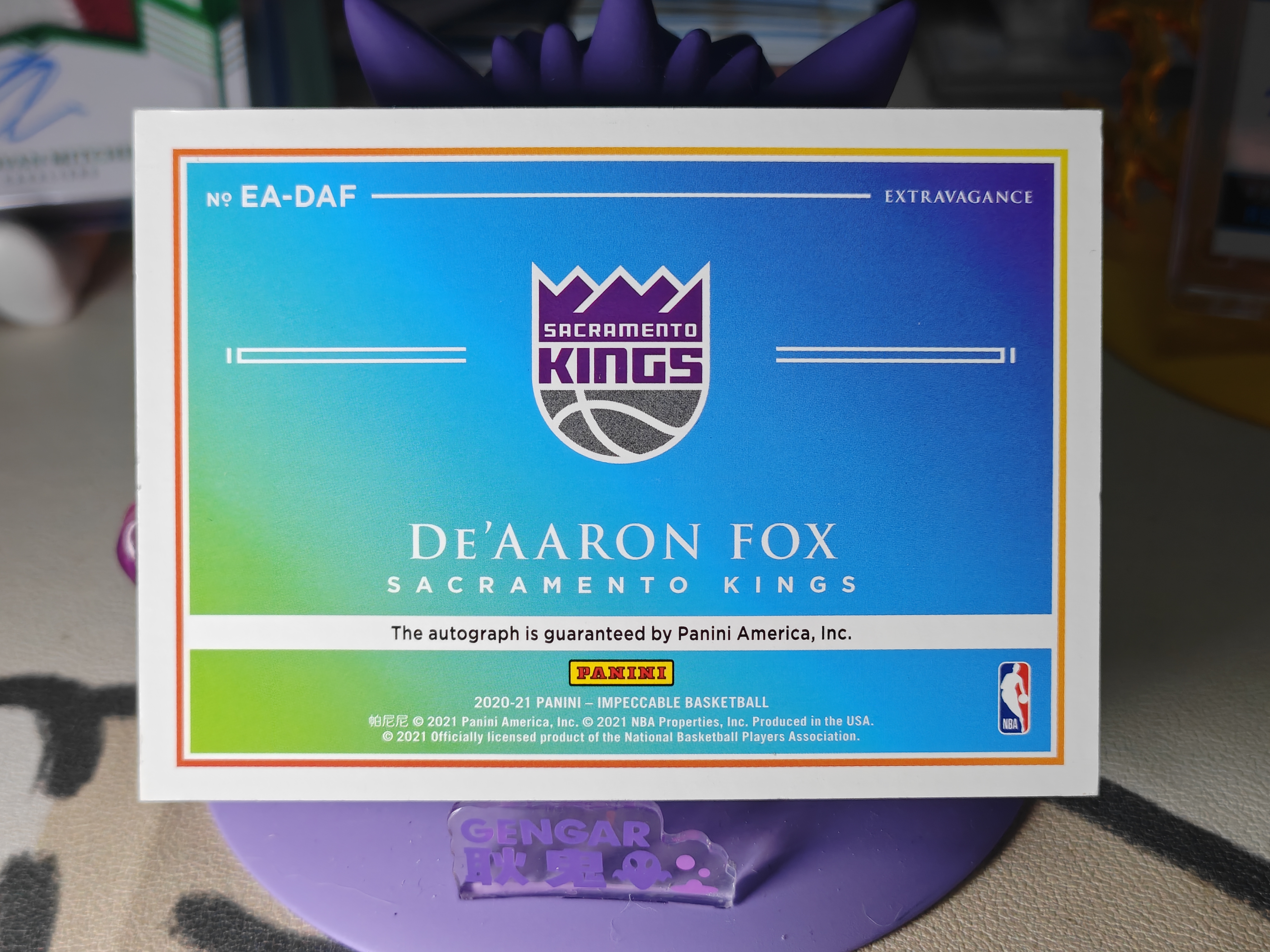 2020-21 Panini Impeccable De'Aaron Fox 达龙福克斯 小狐狸 国王 小真金 26/49编 闪版 奢华签 泼墨签 签字 卡签 卡品如图 文班哈珀队友