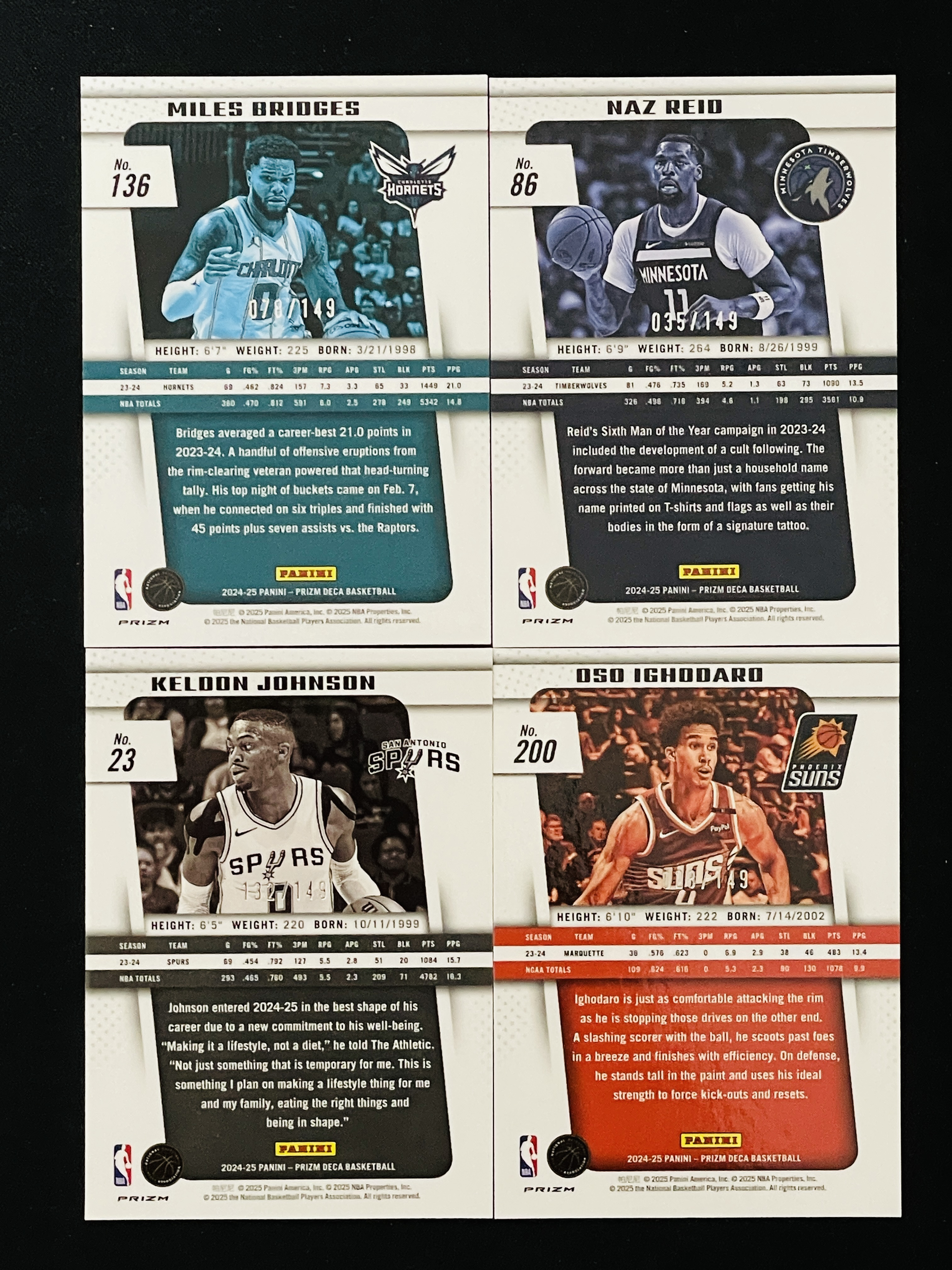 【飞飞代卖】2024-25 Prizm Deca 纳兹里德 布里奇斯 凯尔登约翰逊 新秀 伊戈达罗 蓝折 149编 带编 折射 一图4张打包