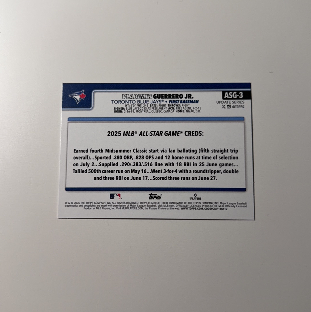 2025 Topps 【锡安代卖】 累计照常 棒球mlb update 蓝鸟队 超级大炮 小格雷罗 Vladimir Guerrero Jr 银折 收藏必备 卡品如图 春总