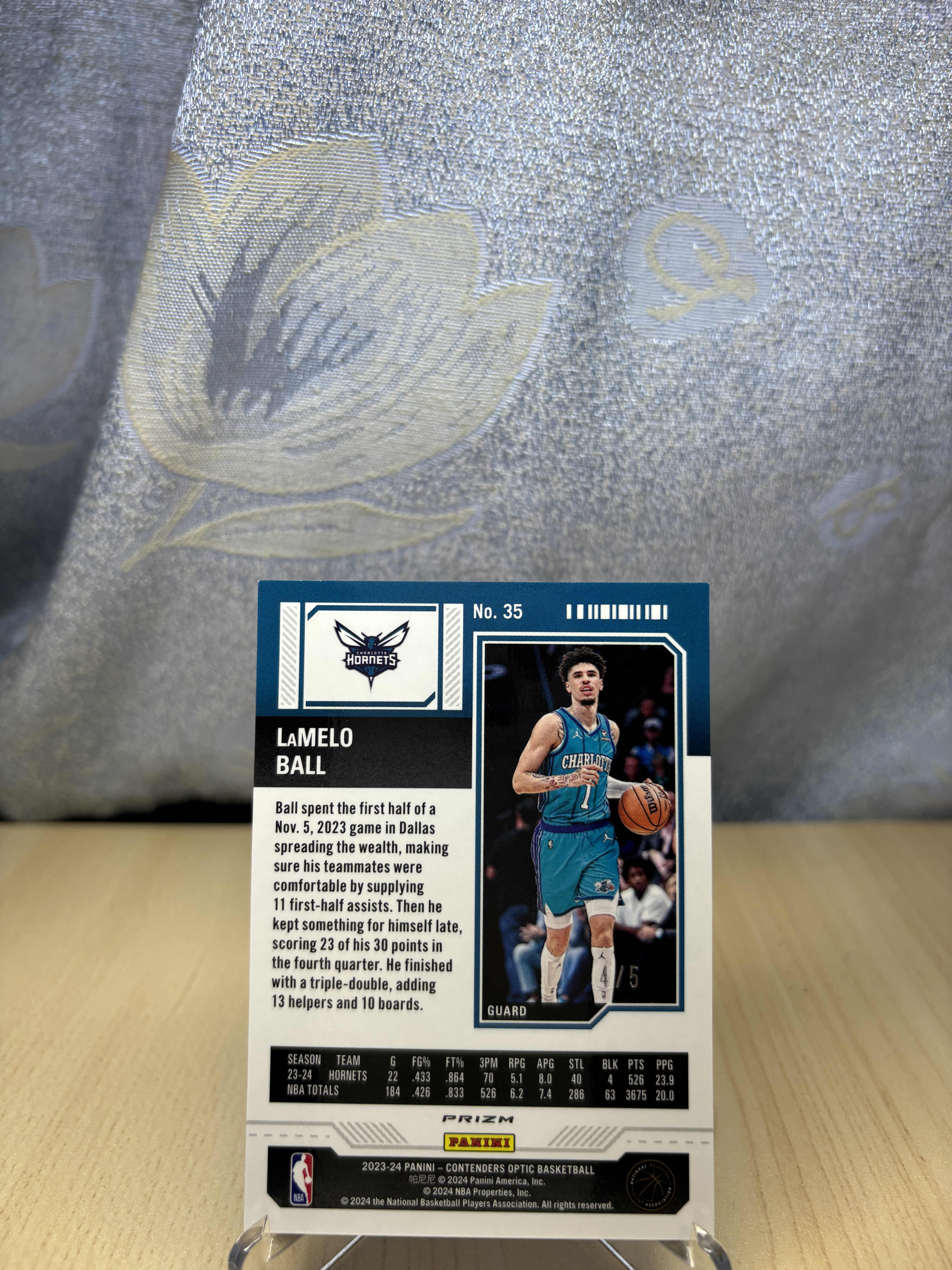 2023-24 Panini Contenders Optic LaMelo Ball 黄蜂 拉梅洛 鲍尔 三球 球票op 2/5编 绿碎冰折