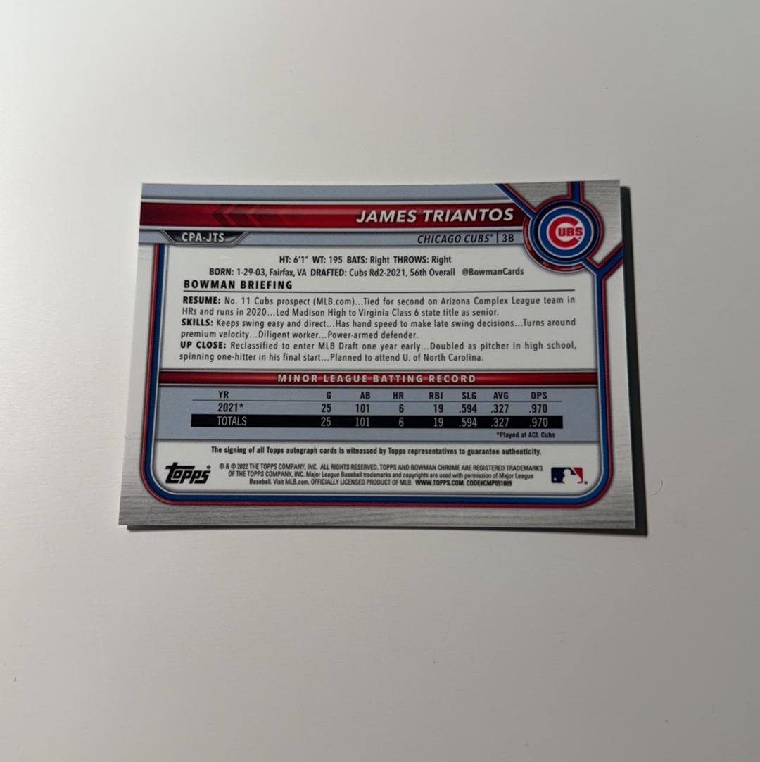 2025 Topps 【锡安代卖】 累计照常 棒球mlb bowman 1st新秀签字卡签 芝加哥小熊热门大物 百大新秀 James triantos 签字 收藏必备 卡品如图 烧麦