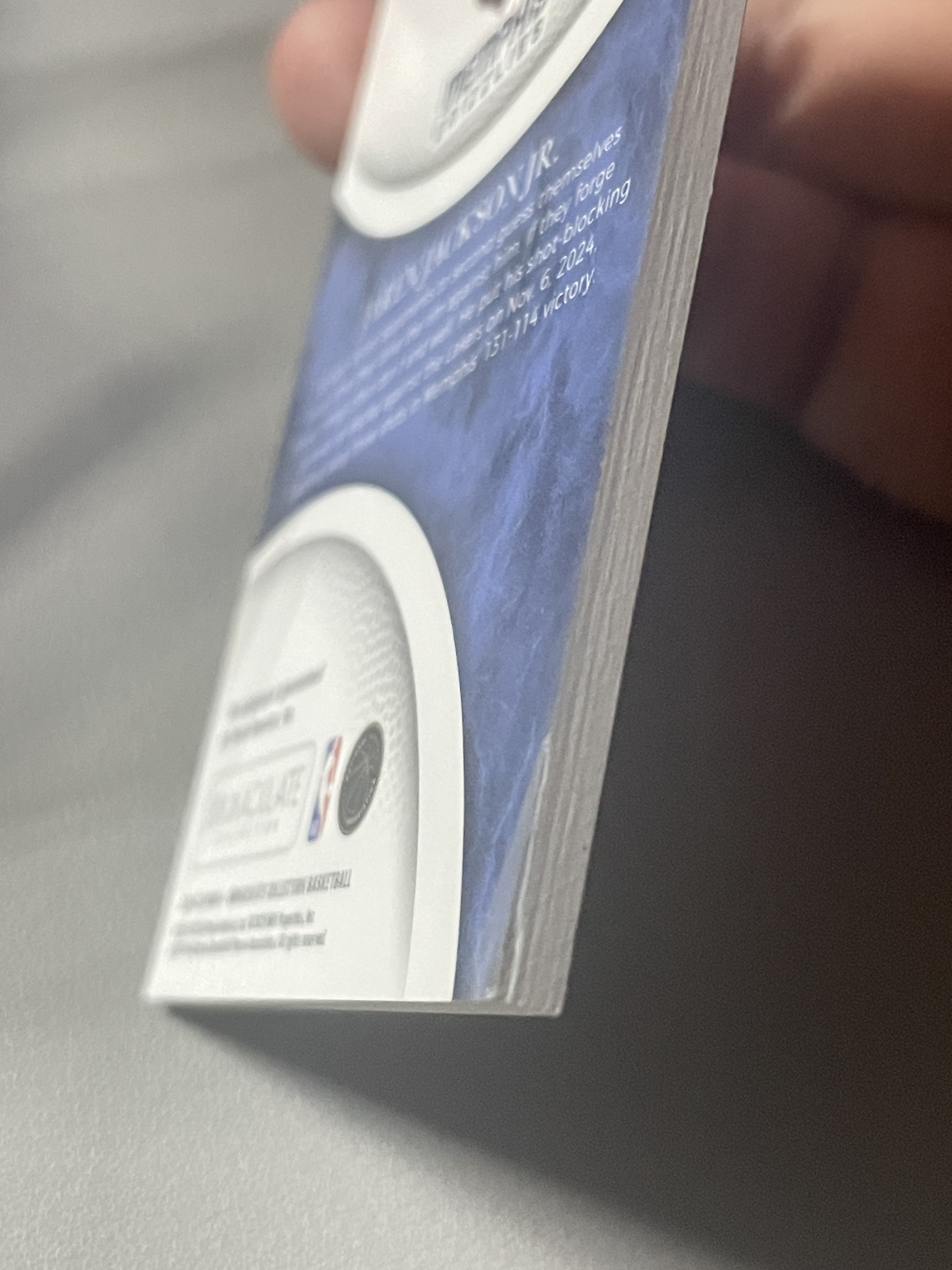 ②折射系列经常会有一道横线印刷线是出品印刷问题,不属于卡品残次范畴。国宝、IMM、NOIR等厚卡有轻微白边白角属于正常现象!镜面系列等卡面轻印划痕、印刷自带痕迹或覆膜不平起泡等卡片自身问题均为通行品。老卡有白边白角属于正常卡品。评级卡砖上的划痕和破损以及评级砖内的卡有卡品问题一律不属于品相问题。PZ、OP等各种折射系列表面的轻微划痕为正常卡品。关于以上卡品问题请确认无误再出价,介意者勿拍,要评级追求金标和10分者请直接购买评级卡。