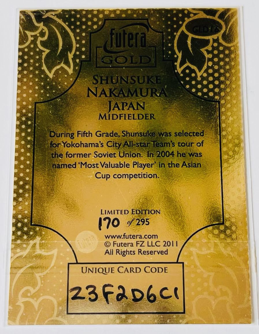 2008 Futera Futera Unique Shunsuke Nakamura 中村俊辅 日本 J联赛 钻石 福特拉 金卡 稀少 极度完美 国家队 球星卡
