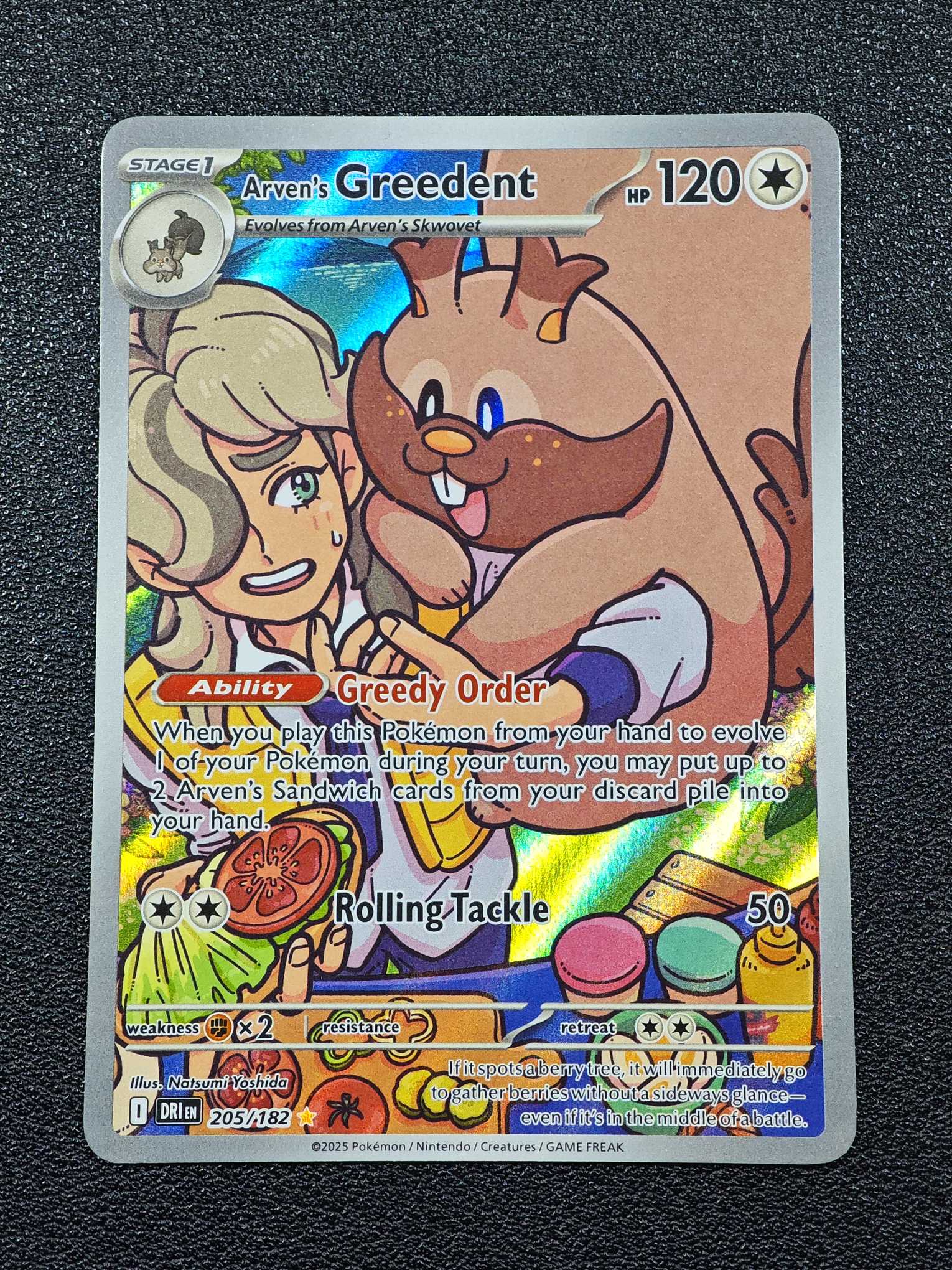 2025 Pokemon TCG 命运劲敌DRI 派帕的藏饱栗鼠(Arven's Greedent)DRI-205/182 en AR 闪卡 高罕 打牌 收藏 凑套必备 实卡精美 裸卡默认微瑕