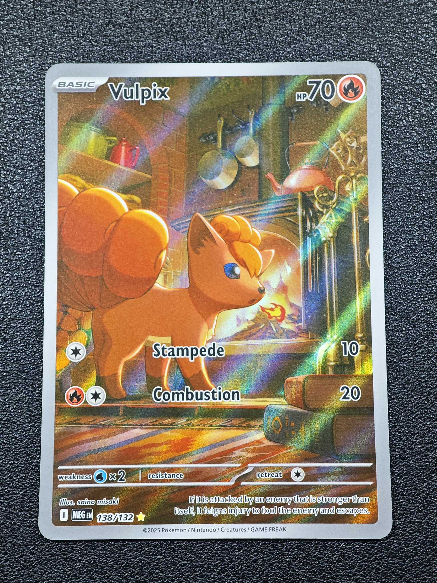 2025 Pokemon TCG 超级进化MEG 六尾(Vulpix)MEG-138/132 en AR 闪卡 高罕 打牌 收藏 凑套必备 实卡精美 裸卡默认微瑕