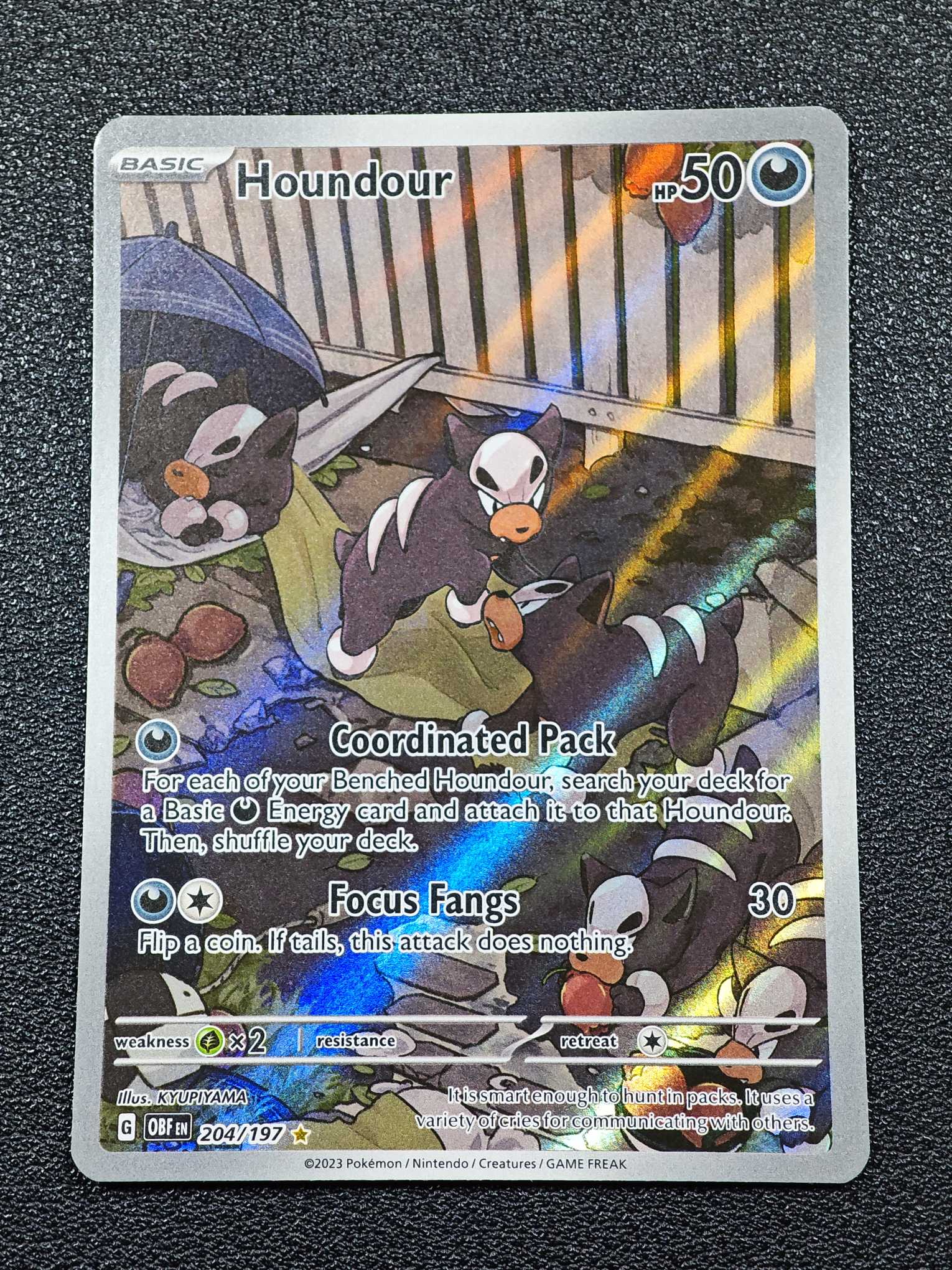 2025 Pokemon TCG 黑炎支配者OBF 戴鲁比(Houndour)OBF-204 en AR 闪卡 高罕 打牌 收藏 凑套必备 实卡精美 裸卡默认微瑕