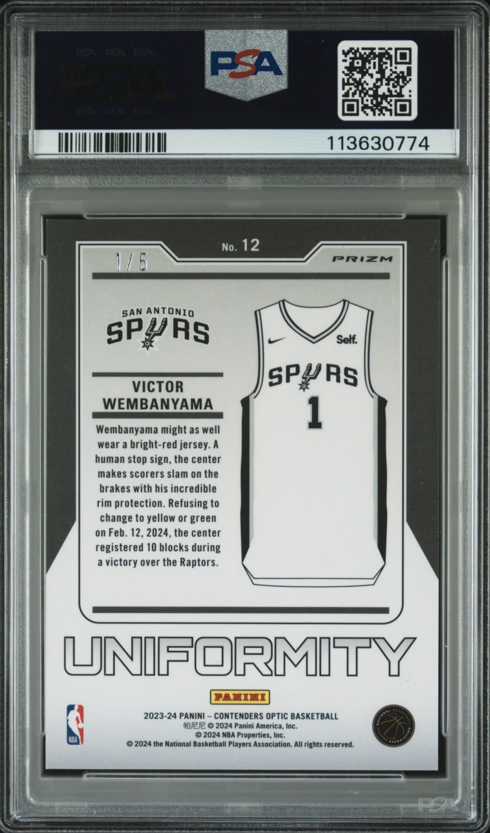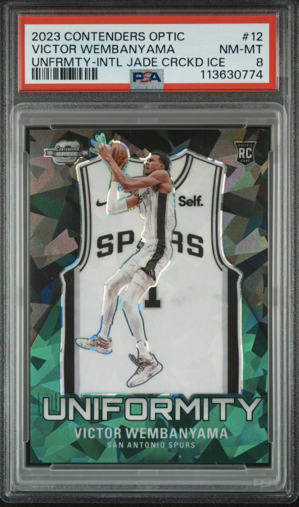 2023-24 Panini Contenders Optic Victor Wembanyama RC 马刺 新秀 文班亚马 1/5编 同背等于1/1 超低编 PSA8分 小背心 绿碎冰折 投资必备