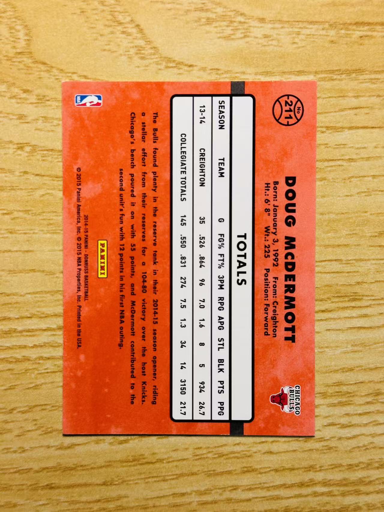 2014-15 Panini Donruss Sean McDermott 嘿嘿代卖 杜蕾斯 麦克德莫特 新秀 RC 199编 公牛 收藏必备