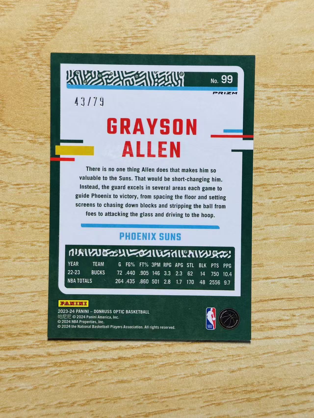 2023-24 Panini Donruss Grayson Allen 嘿嘿代卖 杜蕾斯 optic 格雷森 阿伦 粉镭射 79编 太阳 收藏必备