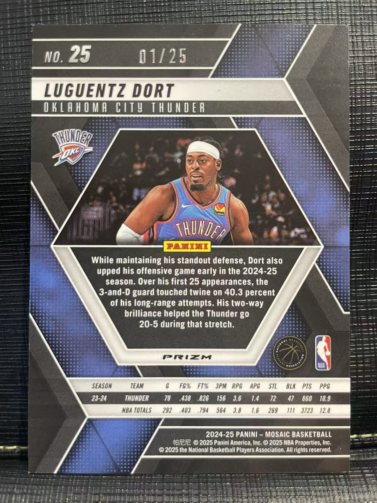 2024-25 Panini Mosaic Luguentz Dort 雷霆 吕岗茨 多尔特 01-25编!超低编!首编!白闪折!马赛克最新版!限量卡 限量带编!值得珍藏💗一卡在手 以文会友💗