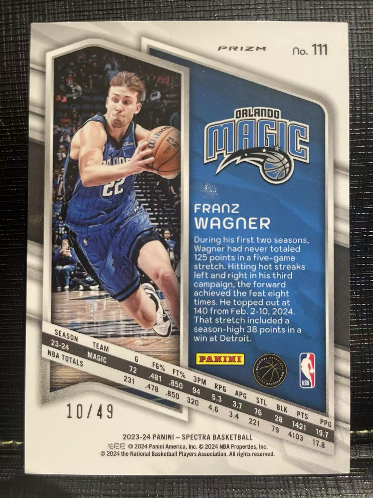 2023-24 Panini Spectra Franz Wagner 魔术 弗朗茨 瓦格纳 49编!限量卡!光谱高端折射!最新版!限量带编!值得珍藏💗一卡在手 以文会友💗