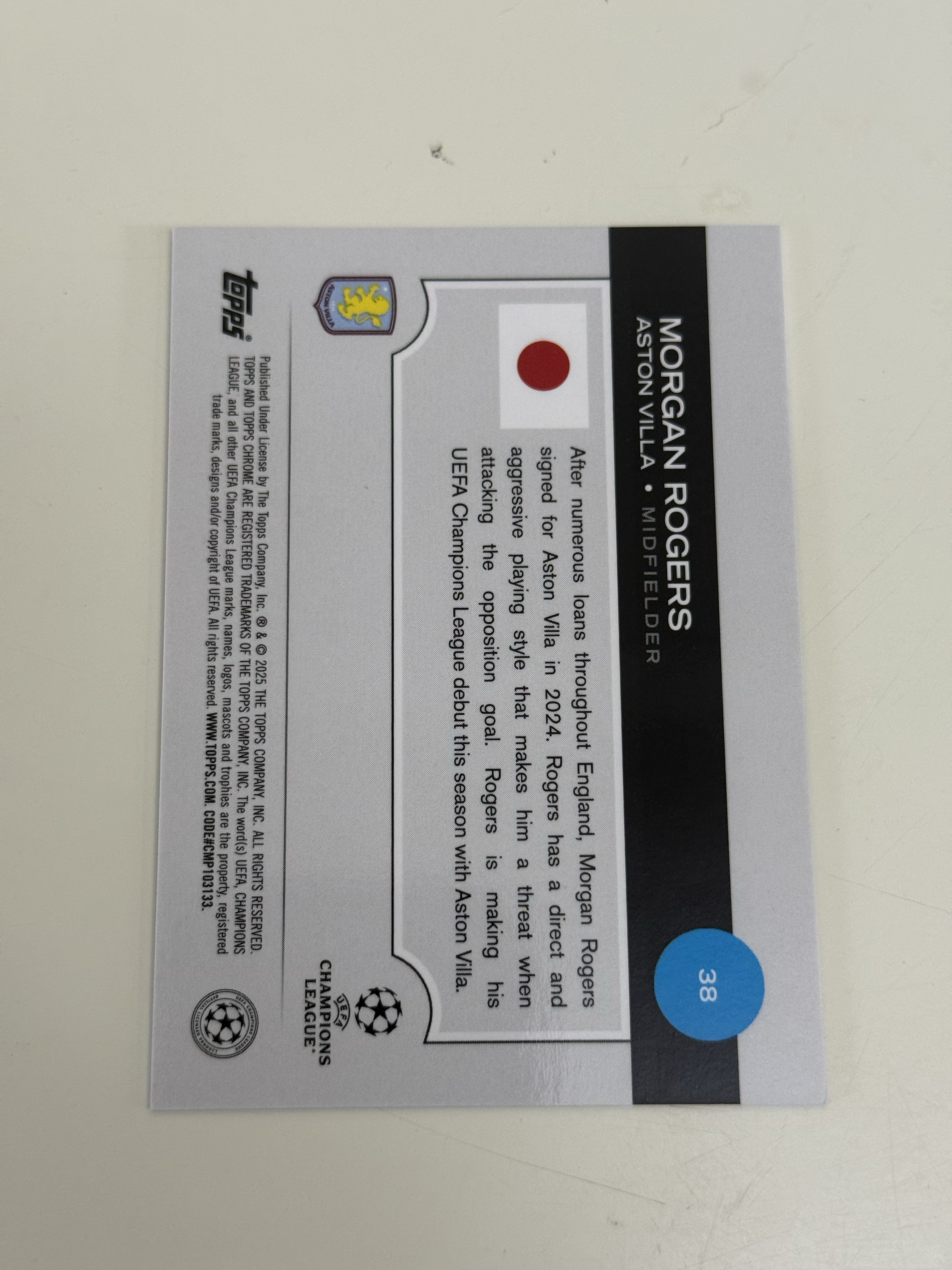 2024-25 Topps Japan Edition UCC 欧冠欧战 日版樱花 Morgan Rogers 摩根 罗杰斯 阿斯顿维拉 125编 收藏必备