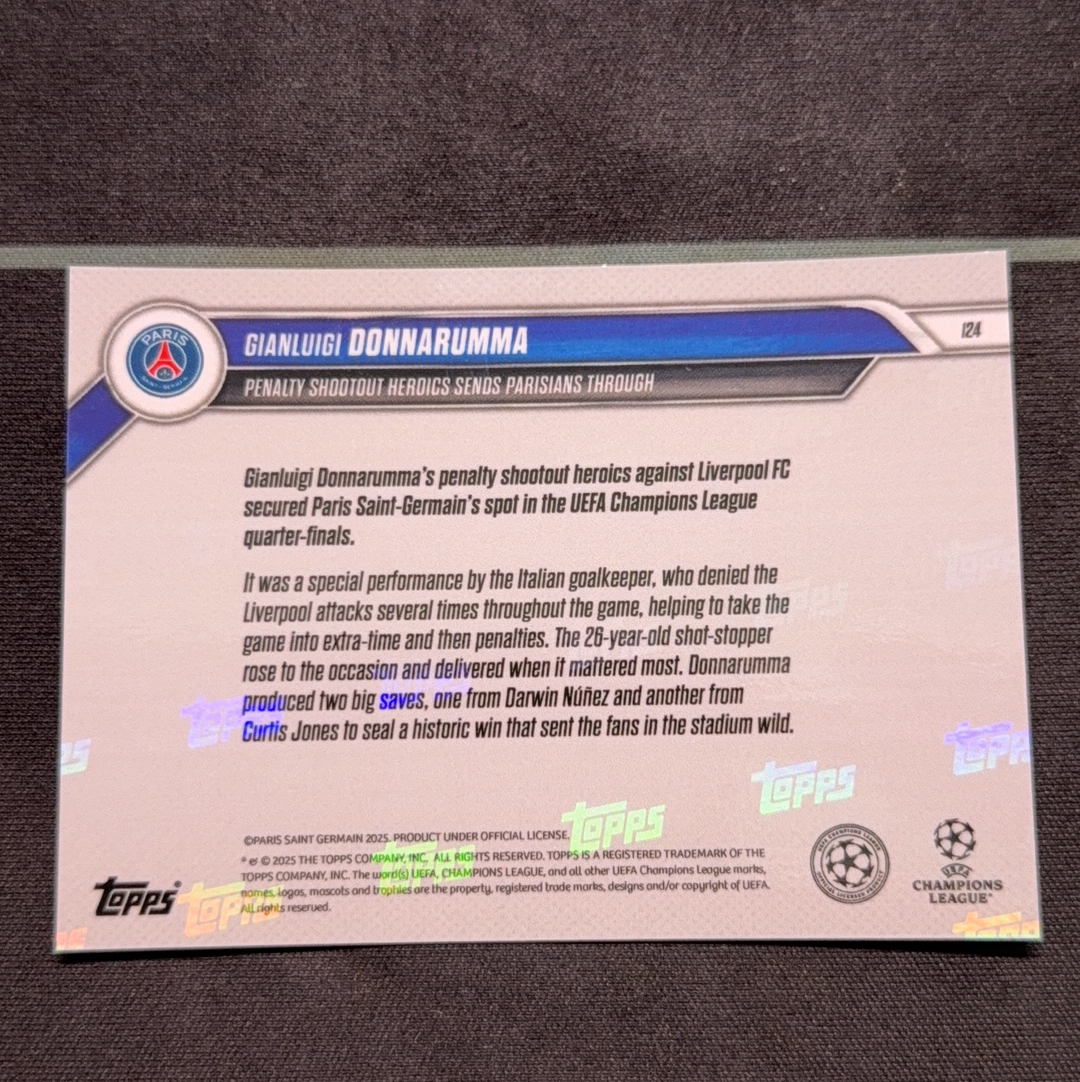 2024-25 Topps Now Gianluigi Donnarumma 多纳鲁马 欧洲杯 世界杯 巴黎圣日耳曼 法甲 意大利 法国 意大利守护神送球队进入下一轮 欧冠冠军 屁屁卡卡 卡淘第一张