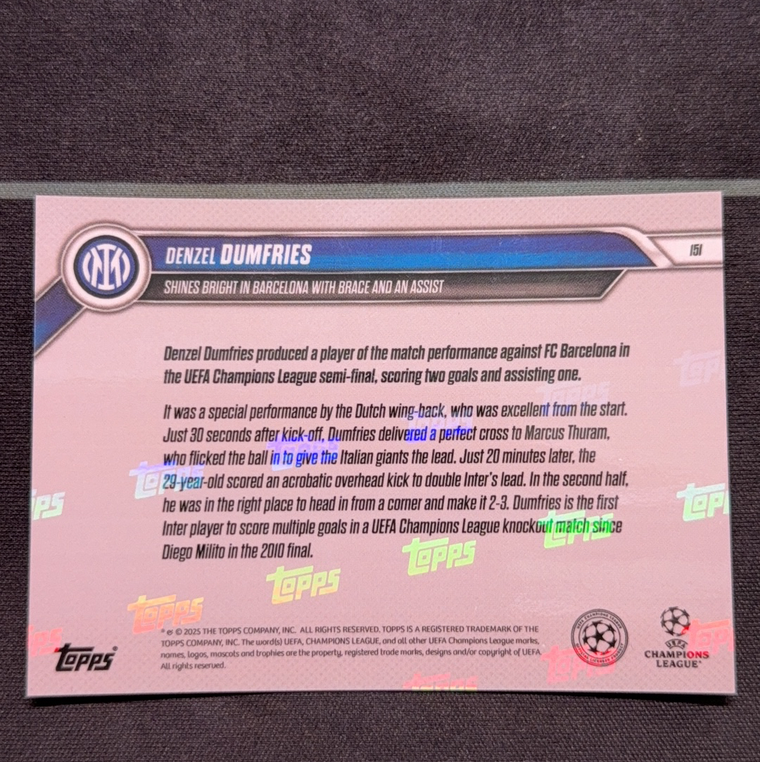 2024-25 Topps Now Denzel Dumfries 邓弗里斯 巴雷拉 国际米兰 意甲 欧冠 意大利 阿根廷 欧洲杯 世界杯 绝杀 半决赛两传一射闪耀赛场 西甲 屁屁卡卡 卡淘第一张