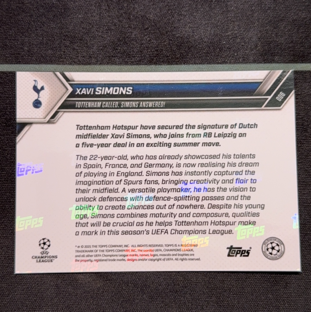 2024-25 Topps Now Xavi Simons RC 哈维西蒙斯 托特纳姆热刺 英超 热刺 欧冠 西班牙中场 托特纳姆热刺呼叫!西蒙斯应答! 屁屁卡卡 卡淘第一张