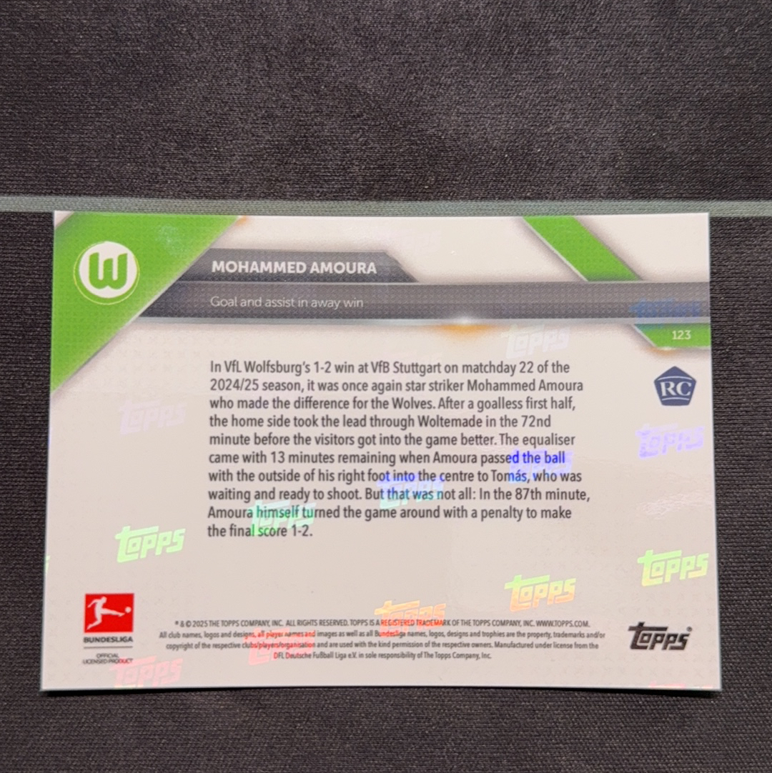 2024-25 Topps Now Mohamed amoura RC 德甲 屁屁卡卡 卡淘唯一! 阿穆拉 沃尔夫斯堡 阿尔及利亚前锋 客场比赛获得重要胜利 世界杯 实卡精美 收藏凑套必备 国内第一张