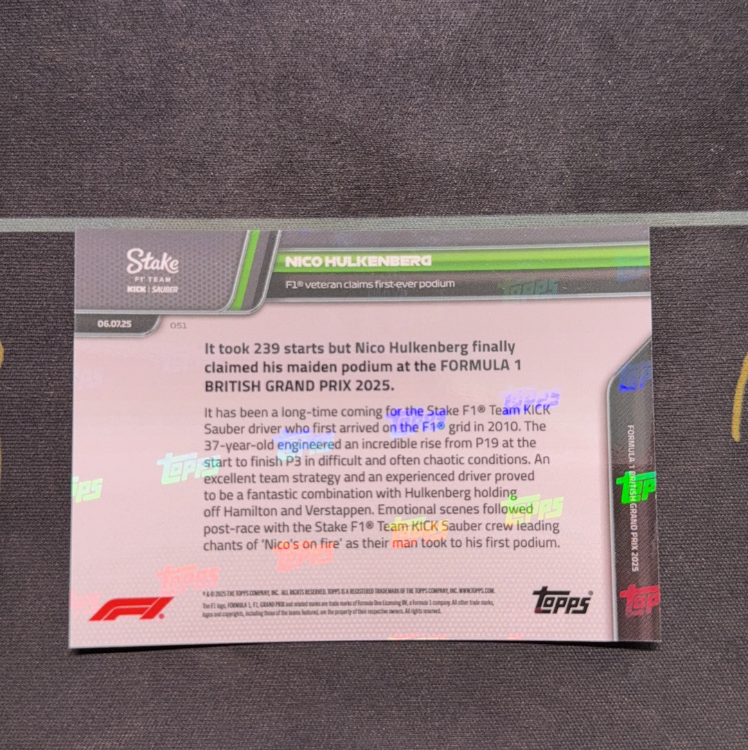 2024-25 Topps Now Nico hulkenberg F1 F2霍肯伯格 索博 F1新秀车手 索博 巴西人F1首秀 生涯第一次登上领奖台! 实卡精美 收藏凑套必备