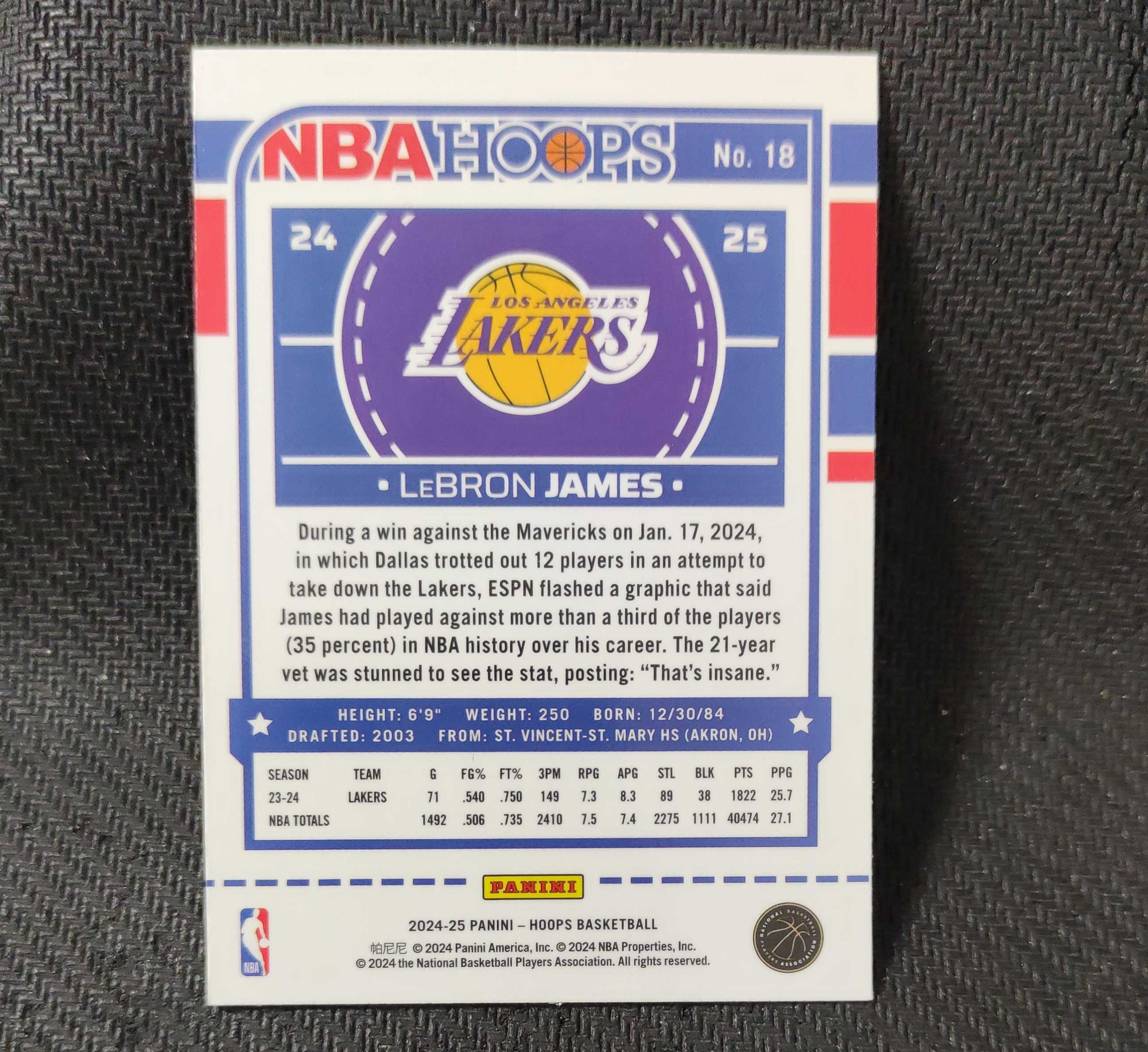2024-25 Panini Hoops LeBron James 勒布朗 詹姆斯 小皇帝 詹皇 湖人队 收藏必备 可累计 回收球星卡