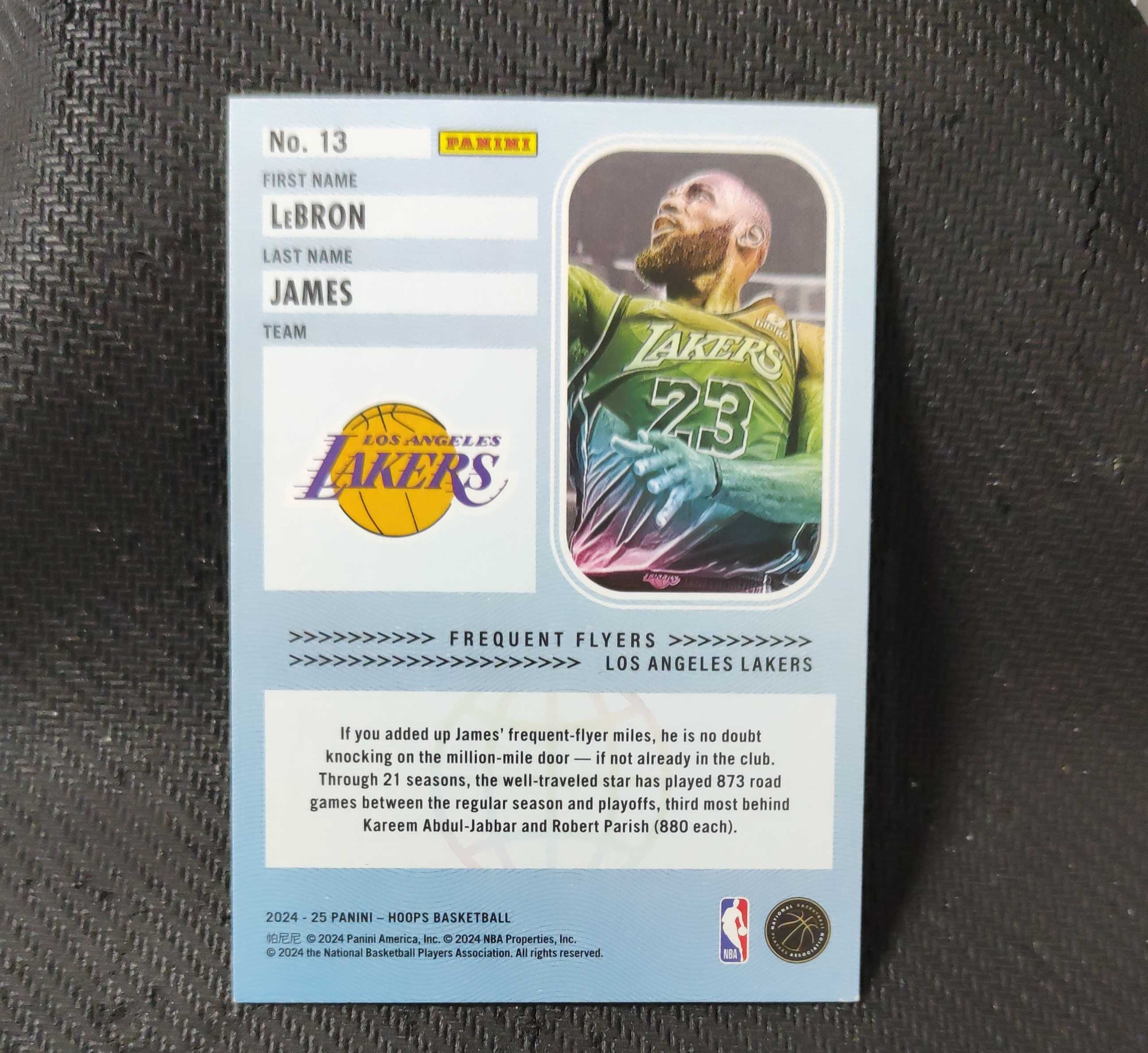 2024-25 Panini Hoops LeBron James 勒布朗 詹姆斯 frequent flyers特卡 湖人队 收藏必备 可累计 回收球星卡