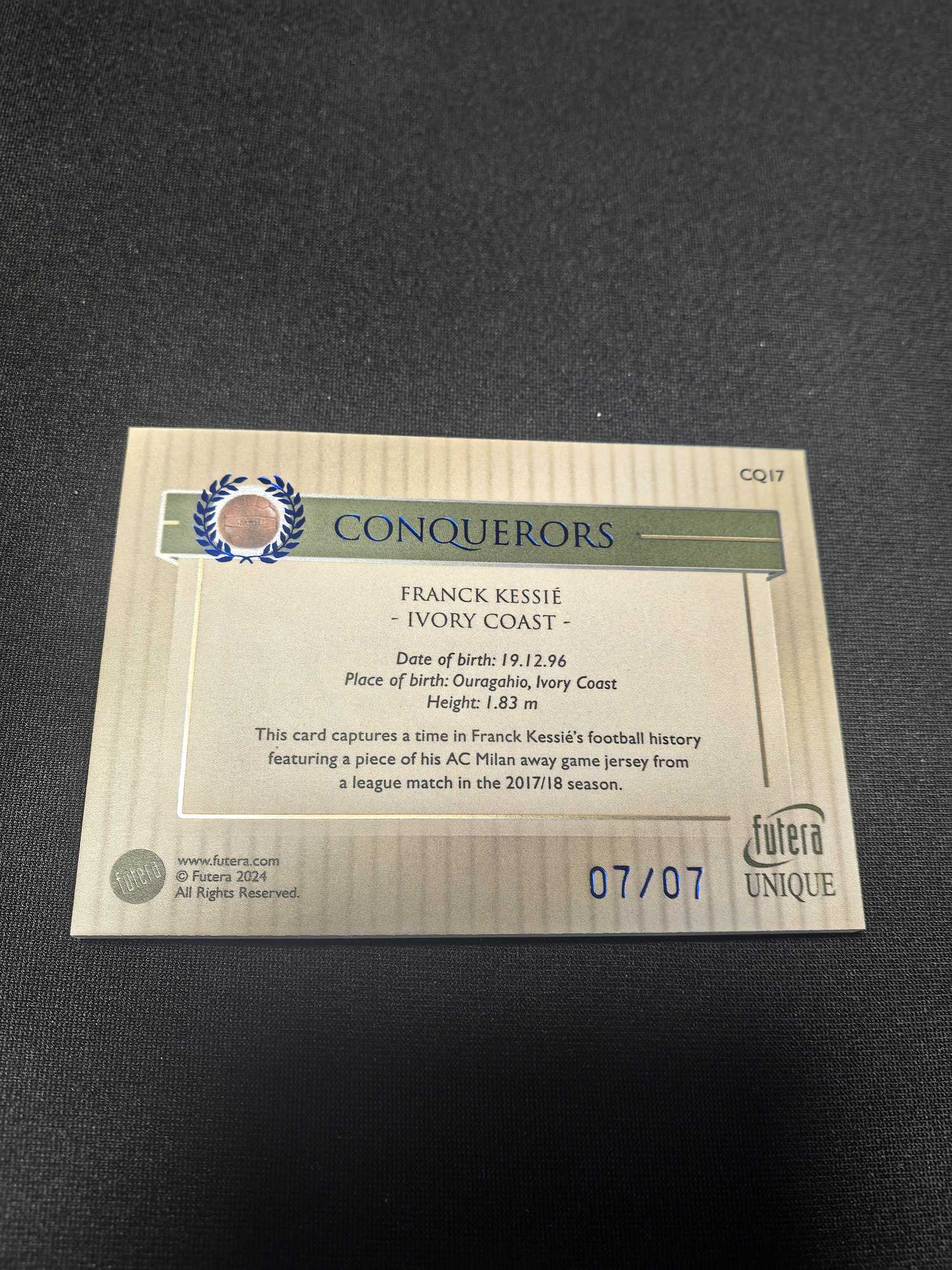 2024 Futera Futera Unique Franck Kessié 低编7编#前米兰&巴萨后腰#科特迪瓦🇨🇮核心凯西#落场亲穿球衣切割双窗#卡品如图