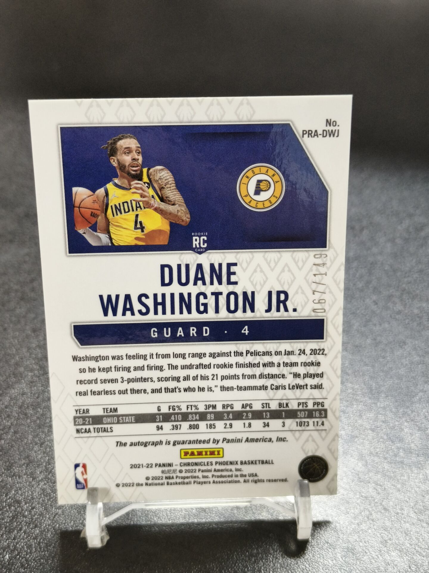 【浩行拍卖 截标预付82%】2021-22 panini chronicles phoenix duane washington jr 编年史 凤凰 步行者 小杜安 华盛顿 rc 新秀 签字 67/149编 专收必备「网展」1115K01劉