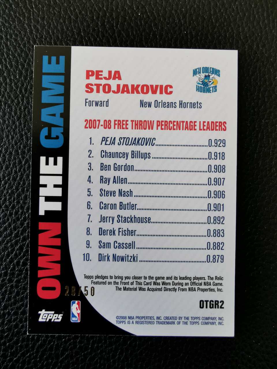 【金矿拍卖】2008 topps own the game 黄蜂选图 佩贾 斯托贾科维奇 peja stojakovic 落场球衣切割 精准三分投射 第二张 小天