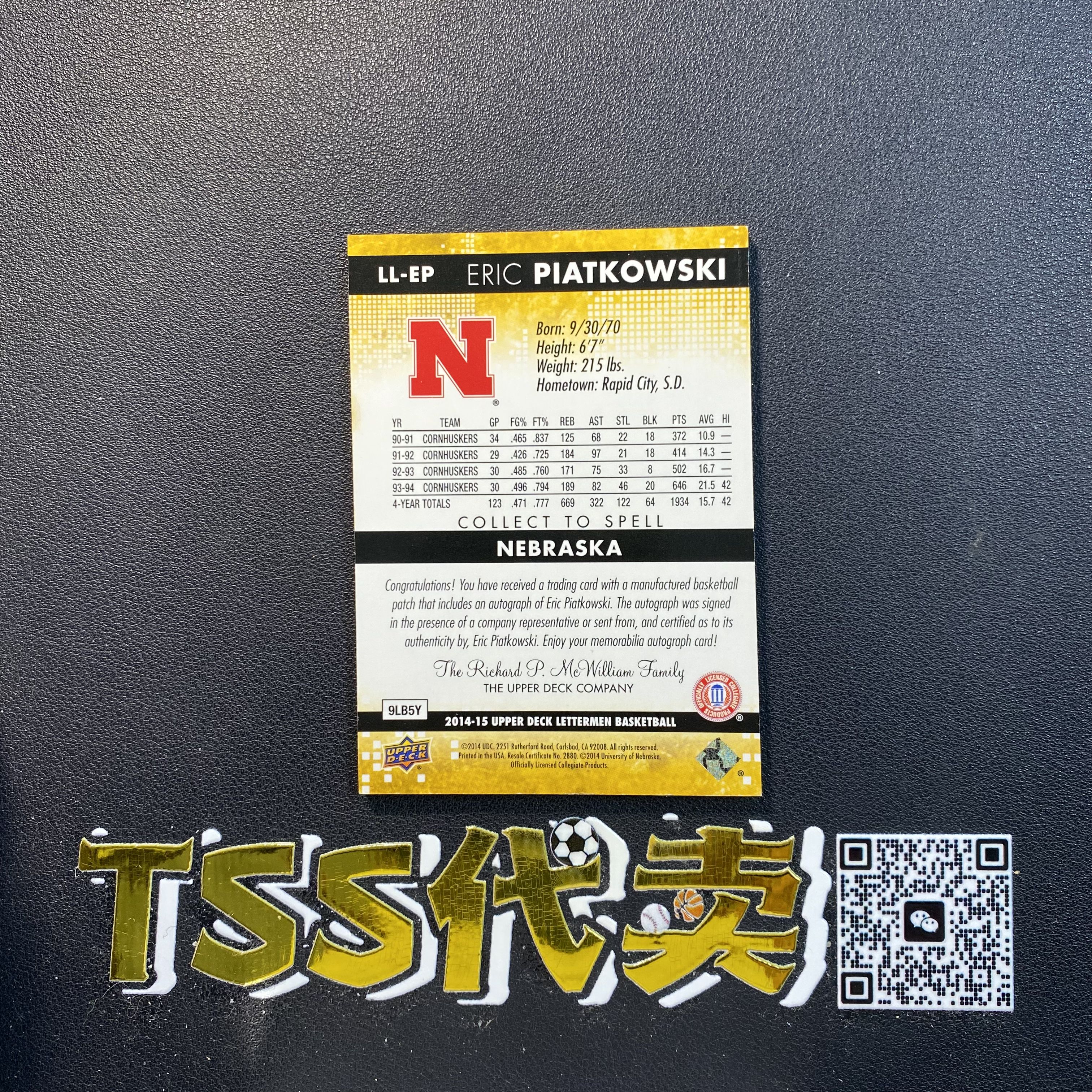 2014-15 【TSS代卖-预付80%】 Lettermen Eric Piatkowski ud 大学 皮亚考斯基 签字 1/25编 首编 物料 切到完整字母 卡品如图 JH4547 LK94-園