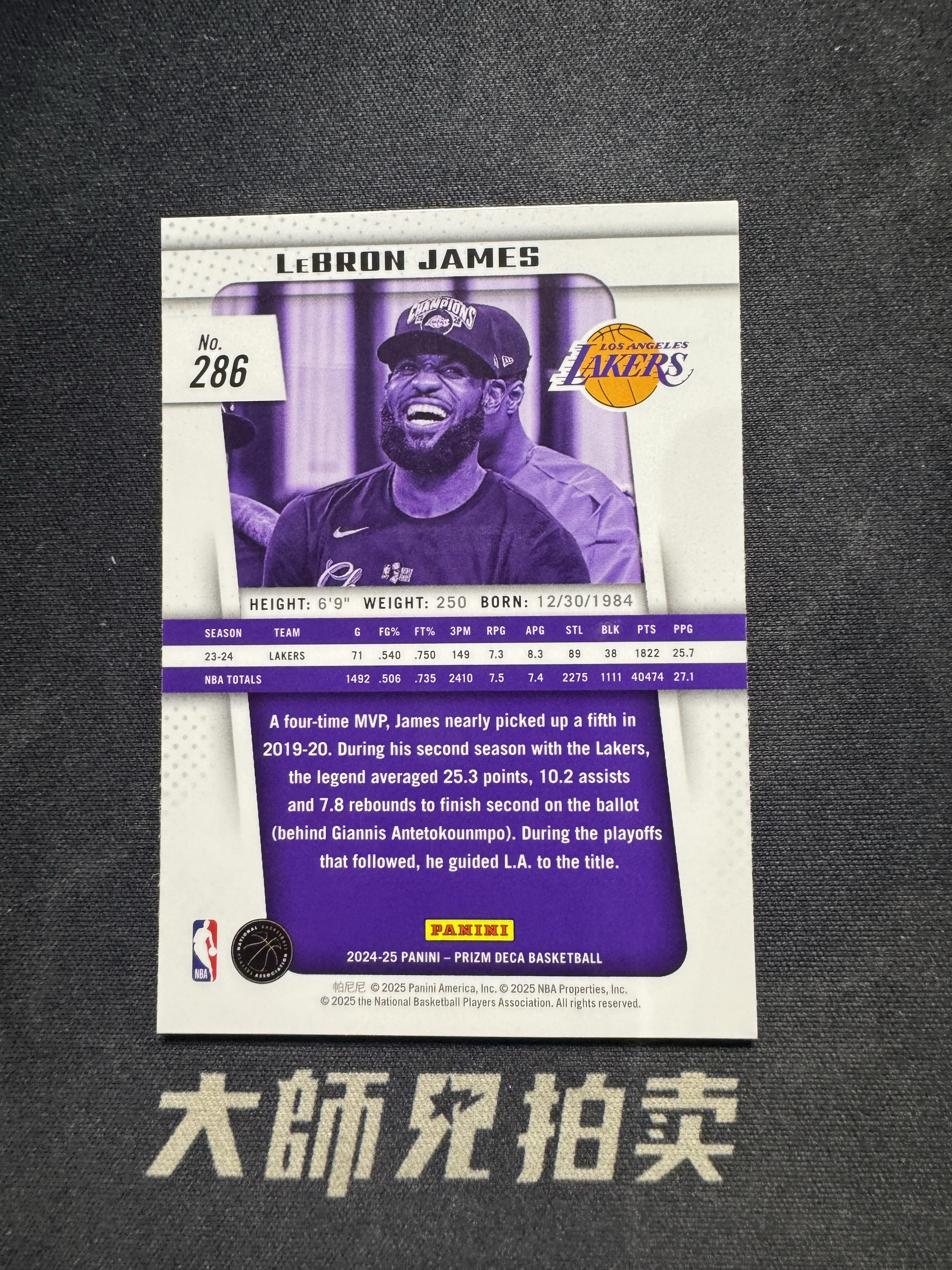 【大师兄拍卖】2024-25 Panini prizm deca LeBron James 湖人 勒布朗 詹姆斯 pz 捧杯 MVP base 通行品 -keame-