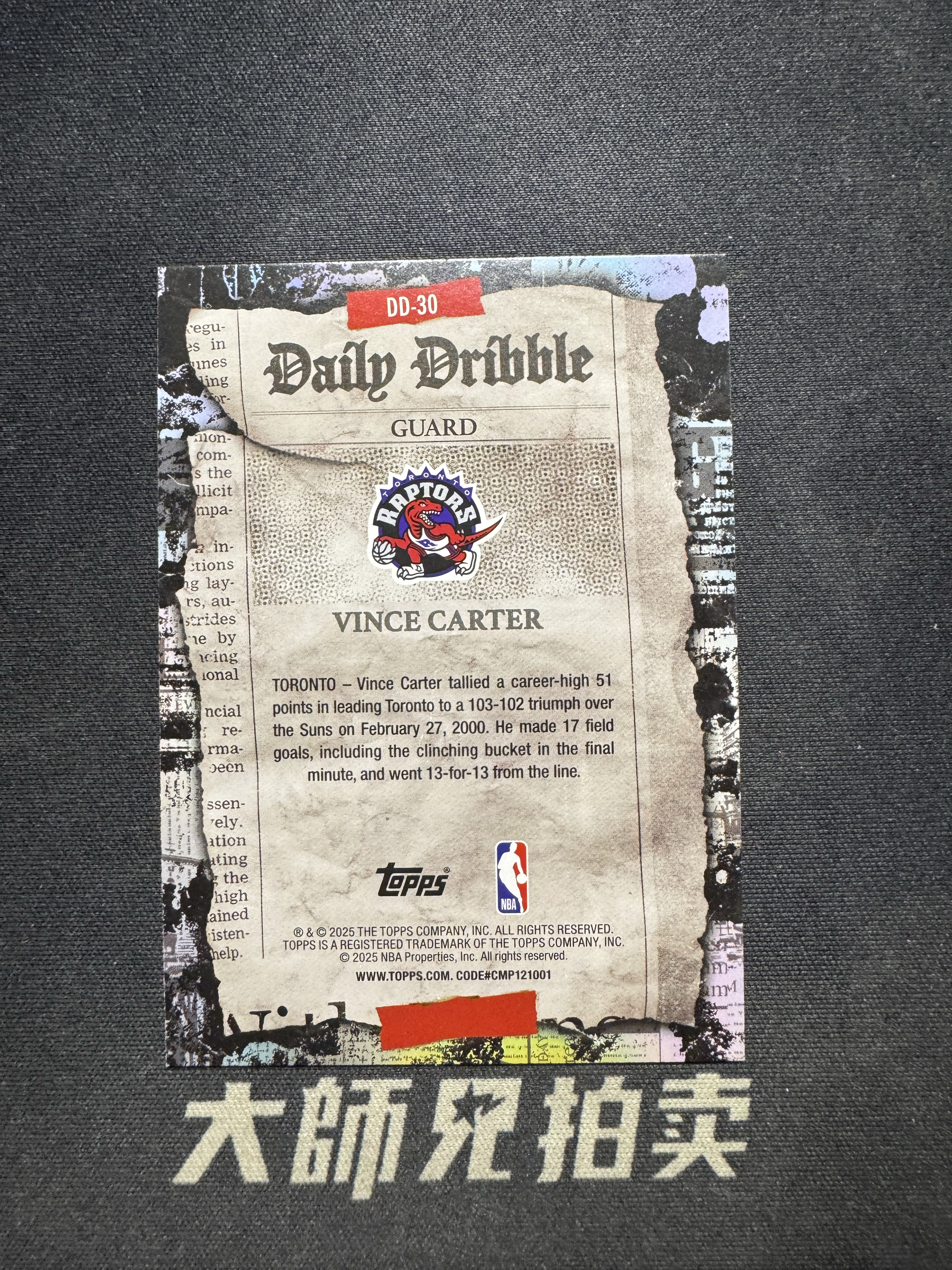 【大师兄拍卖】2025-26 Topps basketball VINCE CARTER 猛龙 文斯 卡特 元年 tc 银折 运动日常特卡 通行品 -keame-