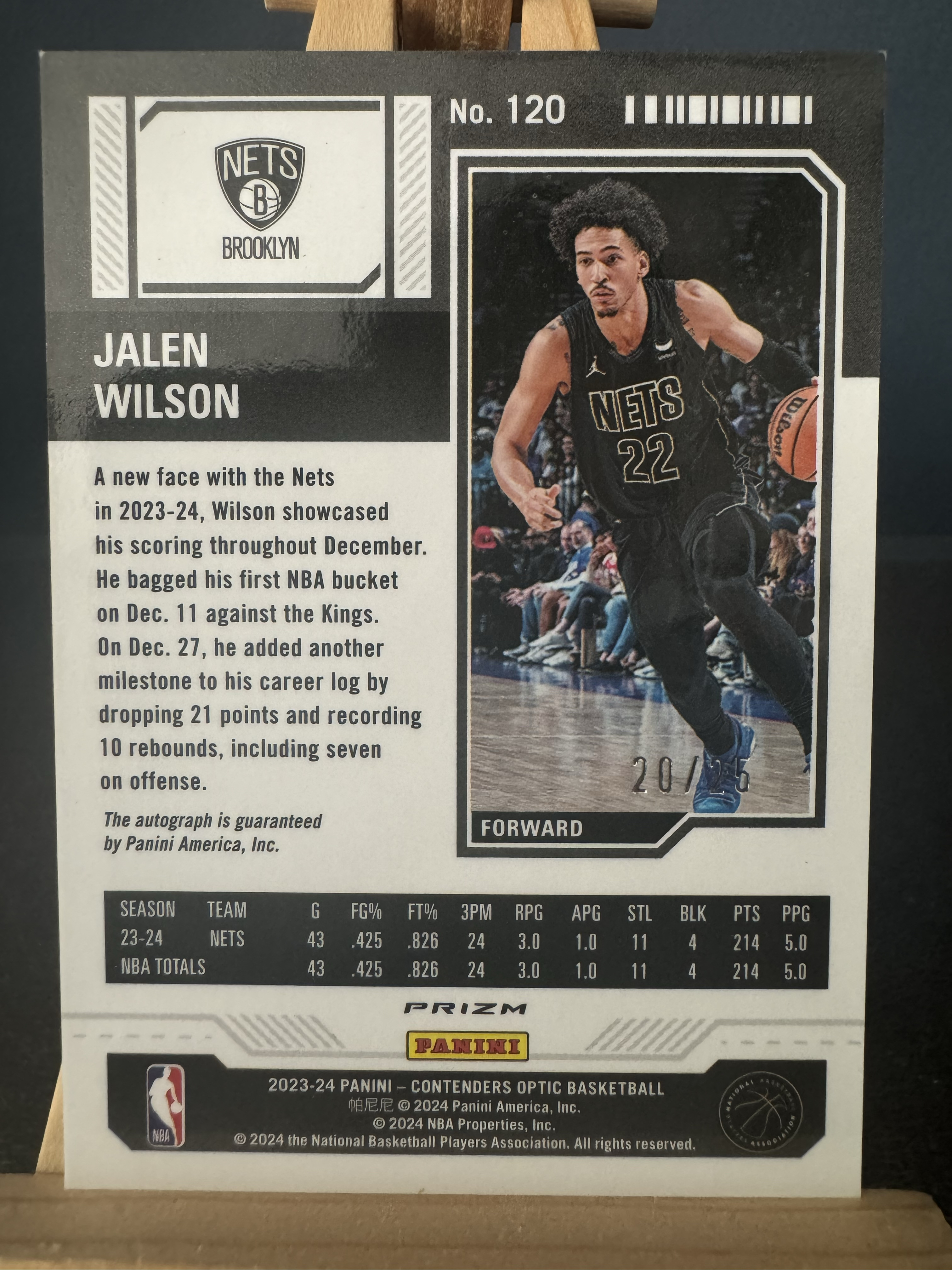 2023-24 Panini Contenders Optic Jalen Wilson RC 球票OP 篮网 杰伦威尔逊 新秀 橙折 签字卡签 折射 25编