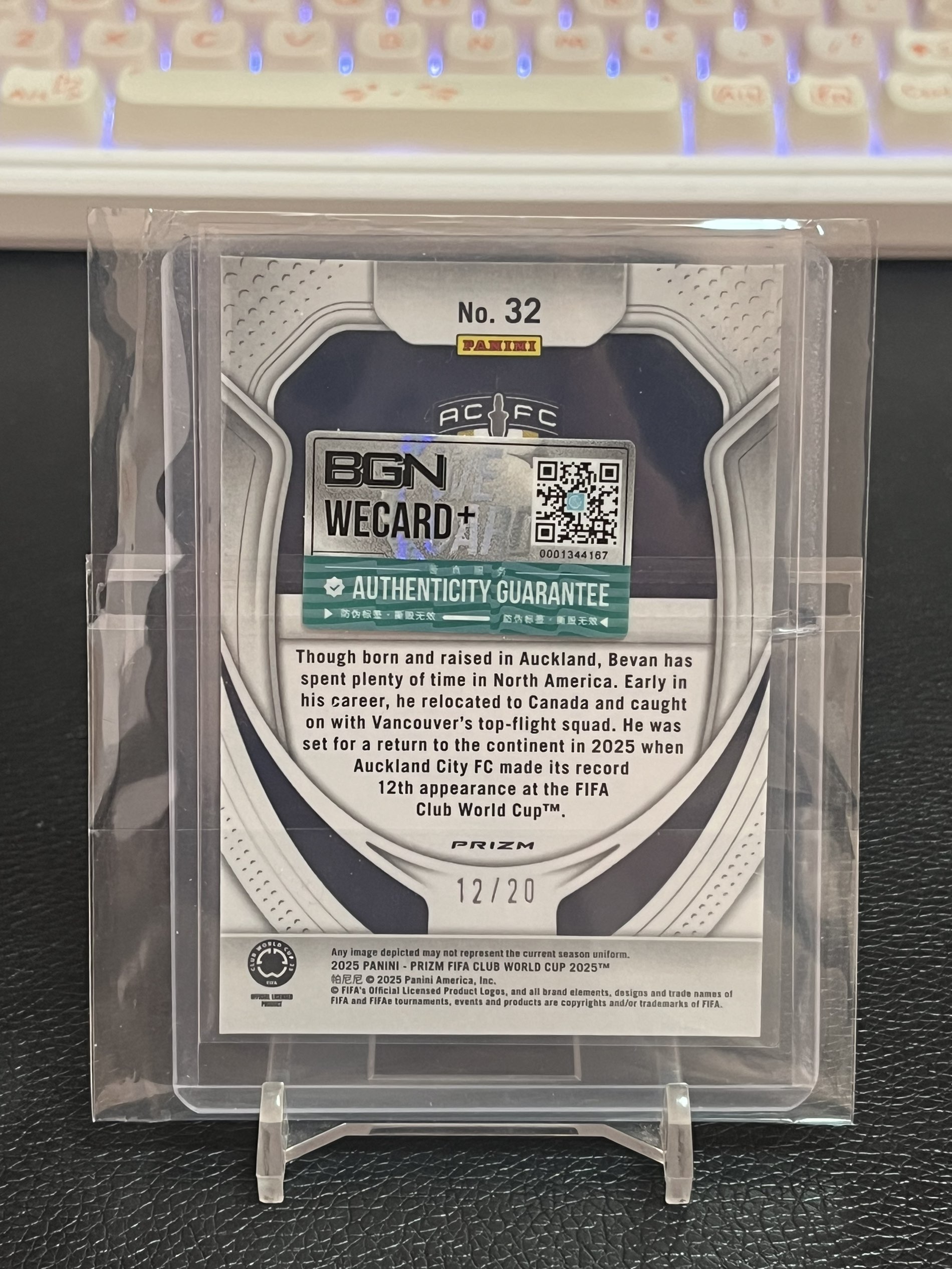 【浩行拍卖 截标预付82%】2025 panini prizm myer bevan 世俱杯 奥克兰城 迈尔 贝文 新秀 rc fifa折 折射 12/20编 专收必备「型月」1115F02祺
