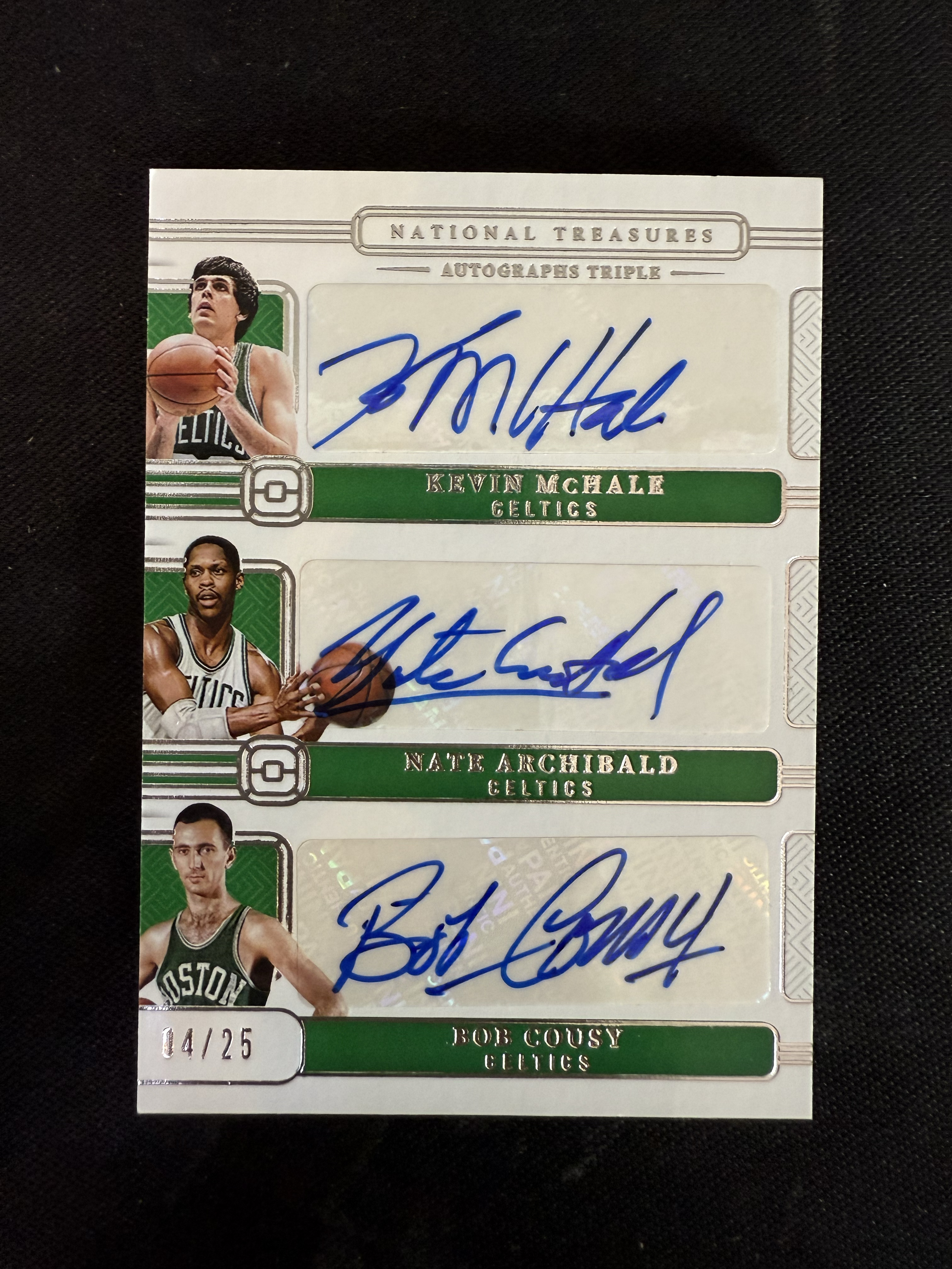 2024-25 Panini National Treasures Kevin McHale 国宝 凯尔特人 麦克海尔 鲍勃库西 阿奇博尔德 三人签字 三签 08/25编 名宿 卡品如图 专收必备