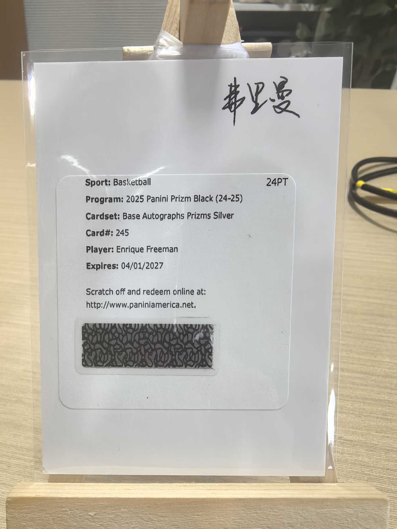 2024-25 Panini Prizm Enrique Freeman RC 步行者 恩里克 弗里曼 新秀RC 签字 银折 交换板 收藏必备pz black